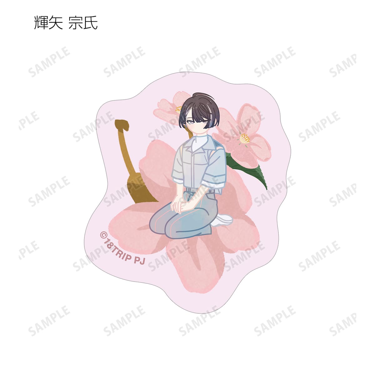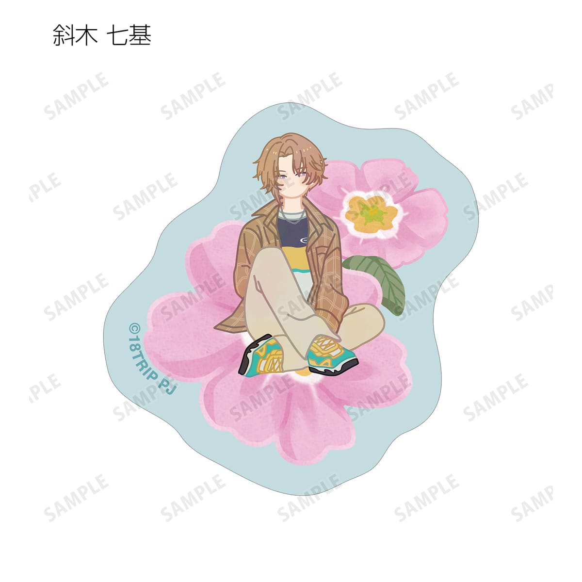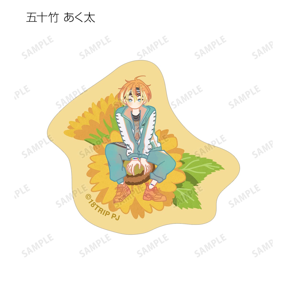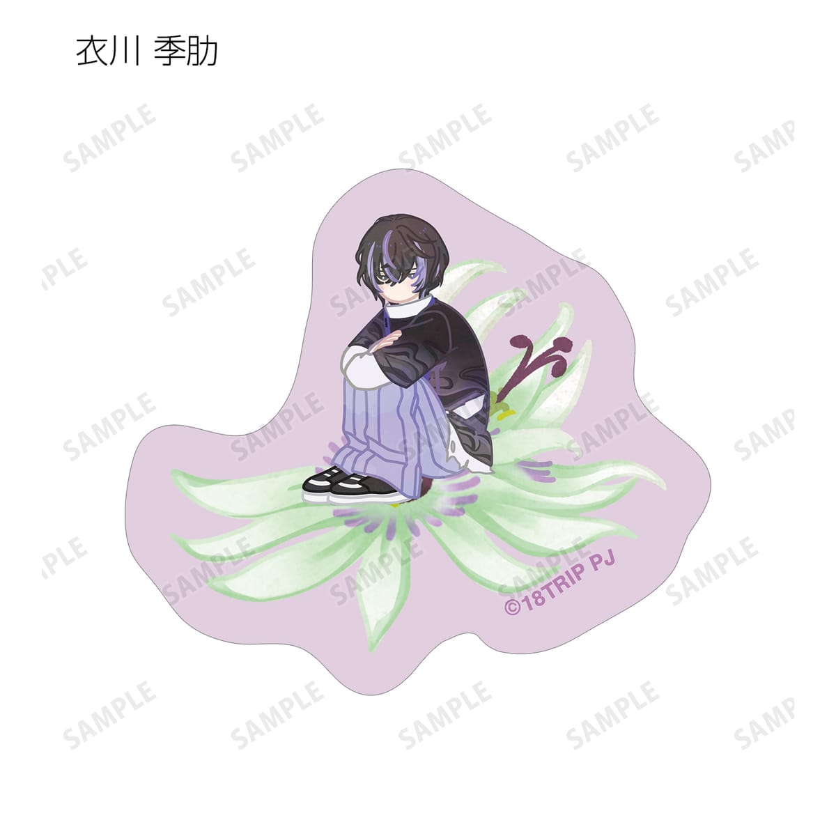 五十竹 あく太、衣川 季肋、斜木 七基、輝矢 宗氏、久楽間 潮のイラストをボタニカルデザインに落とし込んで繊細なタッチで新たに描き起こし、フレークシールに仕上げました。