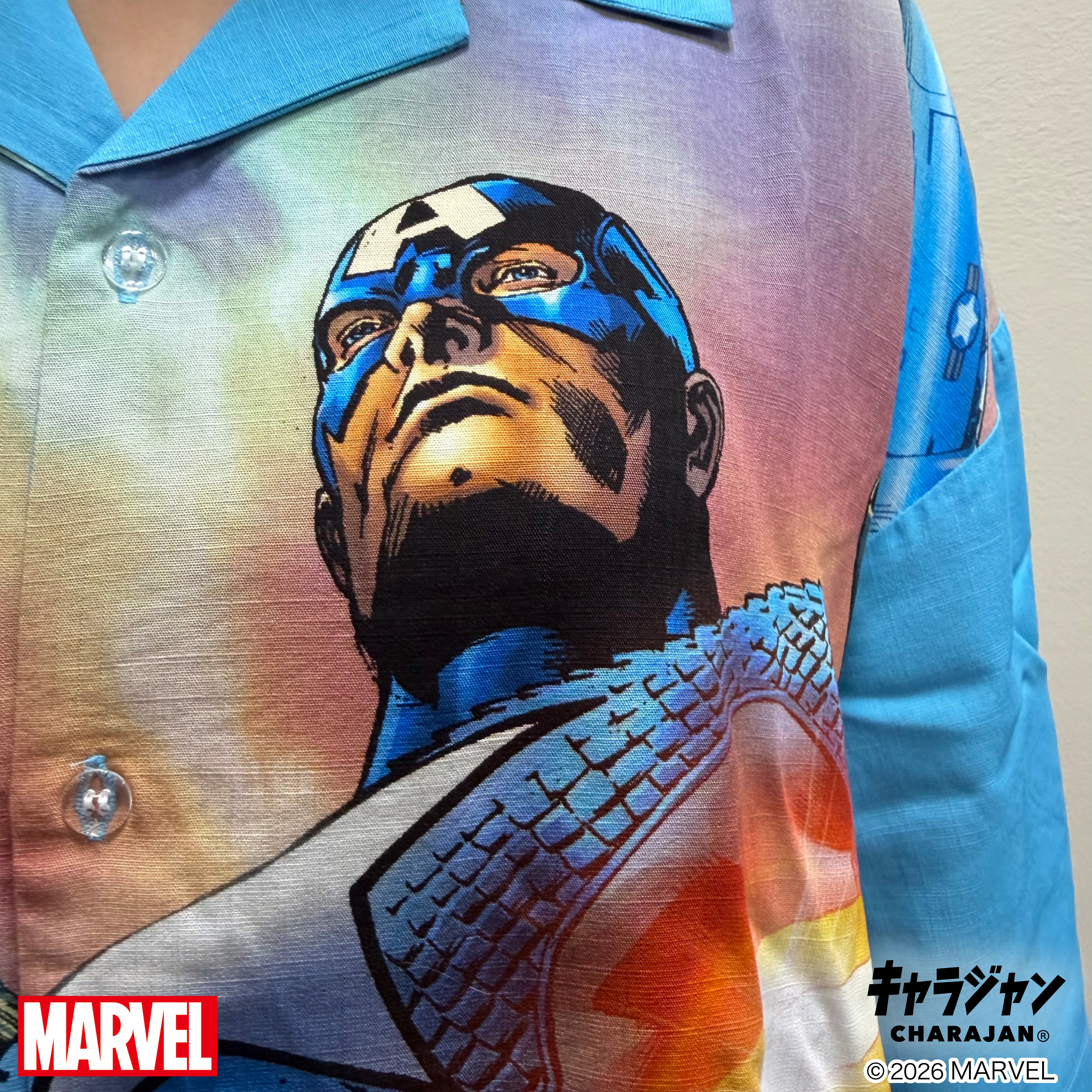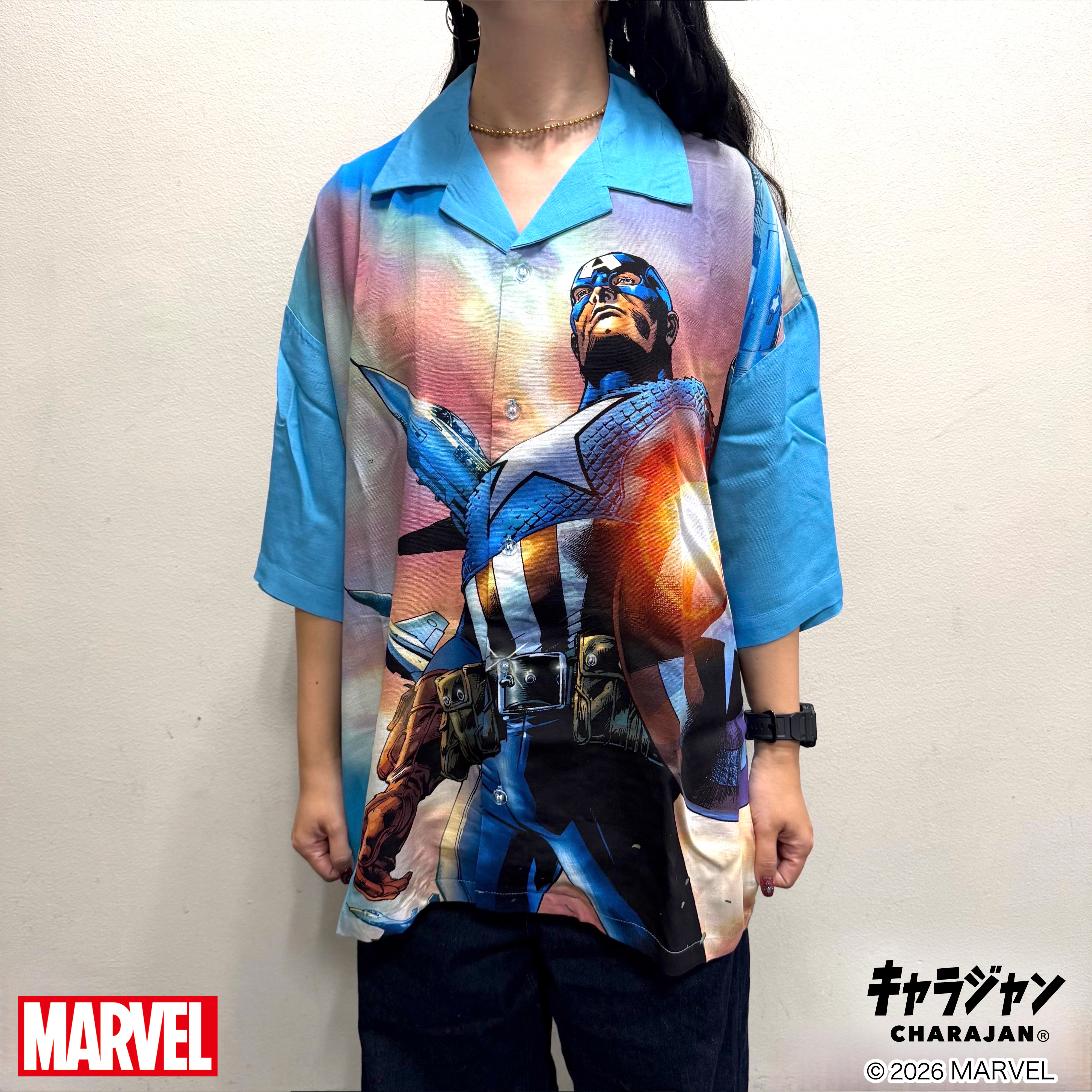 【MARVEL】キャプテンアメリカ レジェンドヒーロー アロハシャツ(Mサイズ)