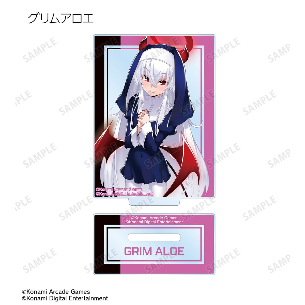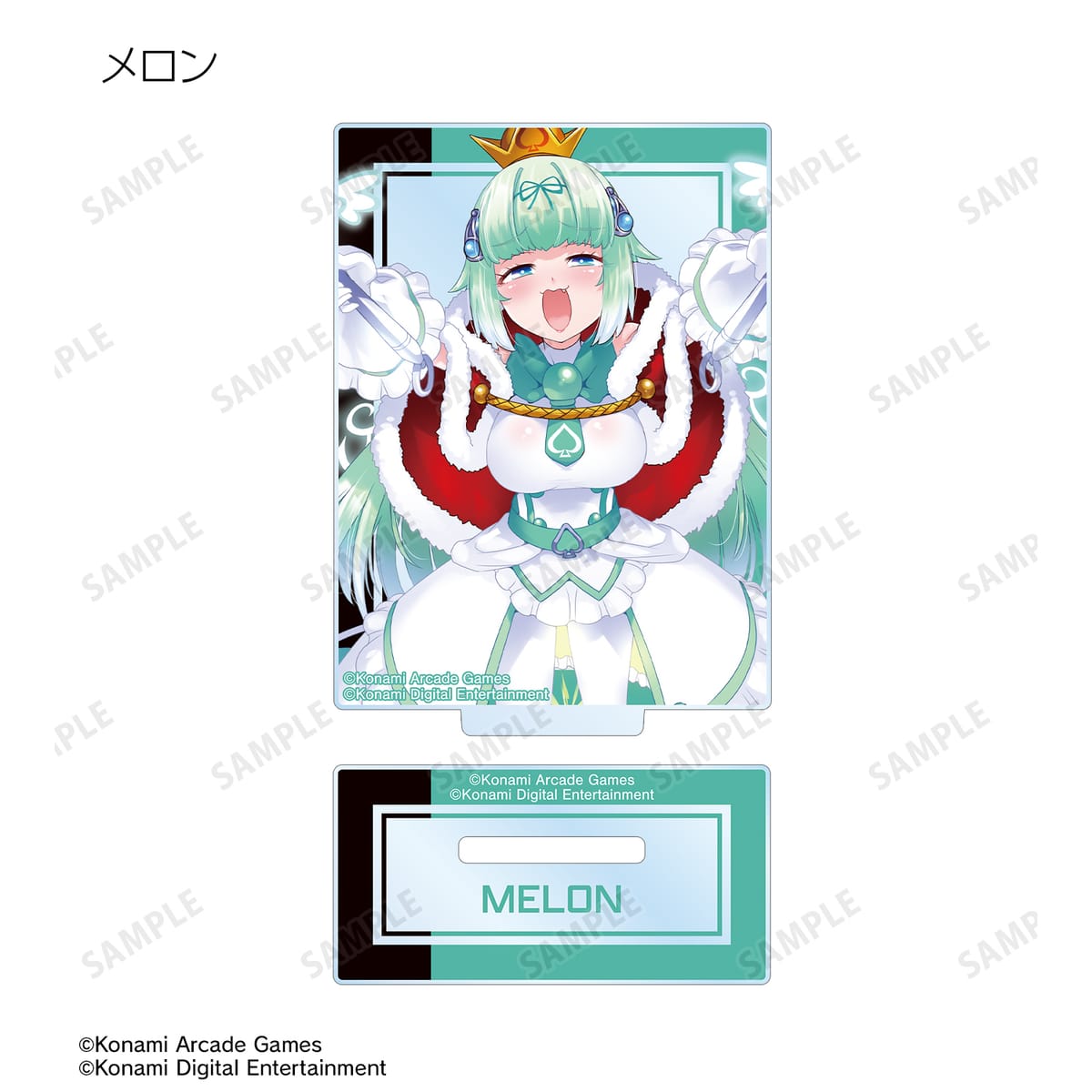 セピア、グリムアロエ、パプル、ブラス、モモコ、パイン、プルーン、メロンのイラストをアクリルスタンドに仕上げました。