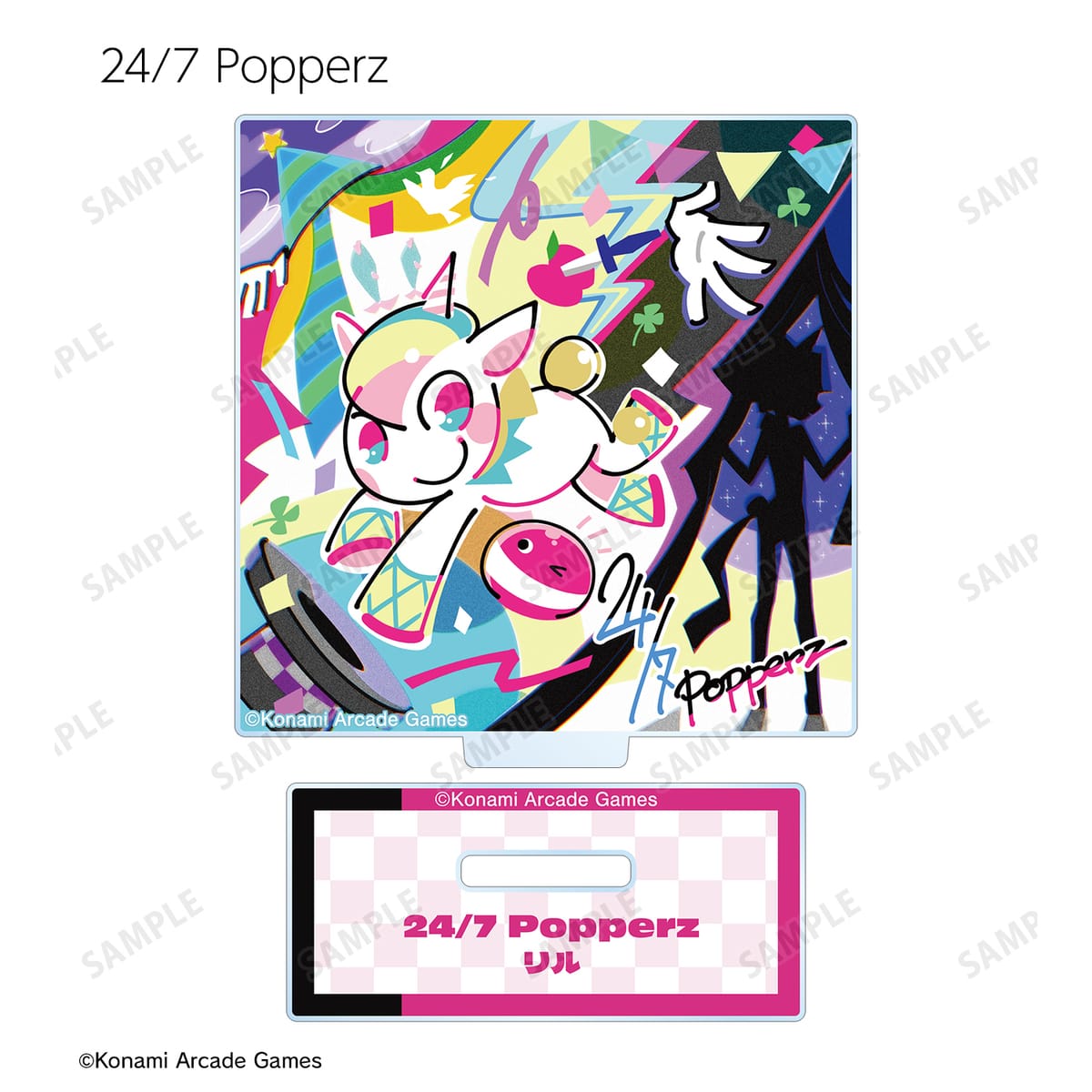 24/7 popperz、Bleep Beep Bop、Harmonia、Homesick Pt.2&3、焔華、Welcome to pop'n fantasy、TRUTH behind U、朱と碧のランページ、朧月覆う雲をも裂きぬ、流離、少年は空を辿る、零と弌の鍵の唄、Invisible Farewell、大見解、ポチコの幸せな日常の楽曲ジャケットイラストをアクリルスタンドに仕上げました。
