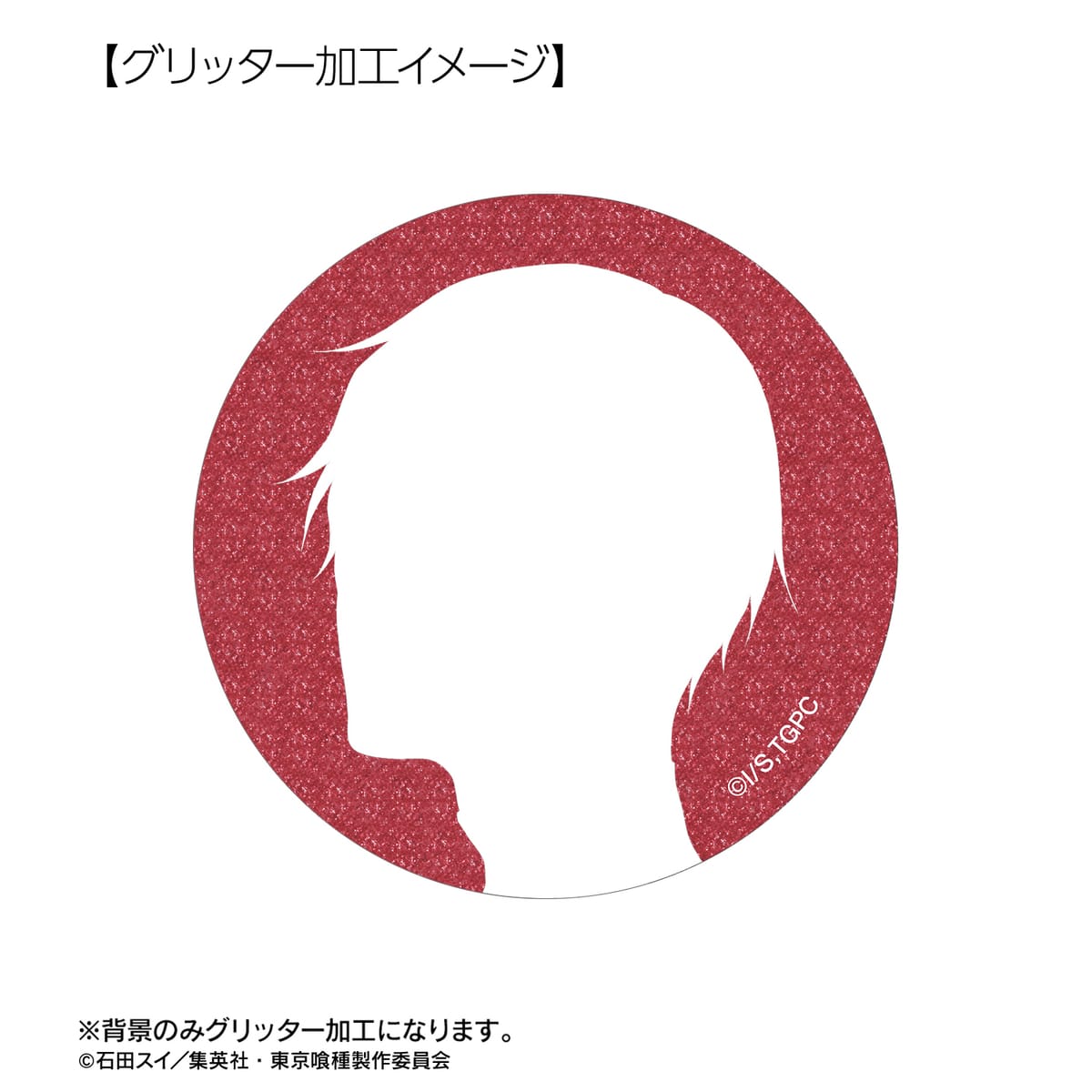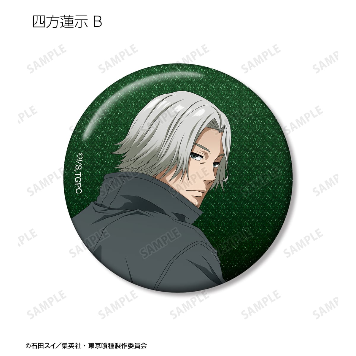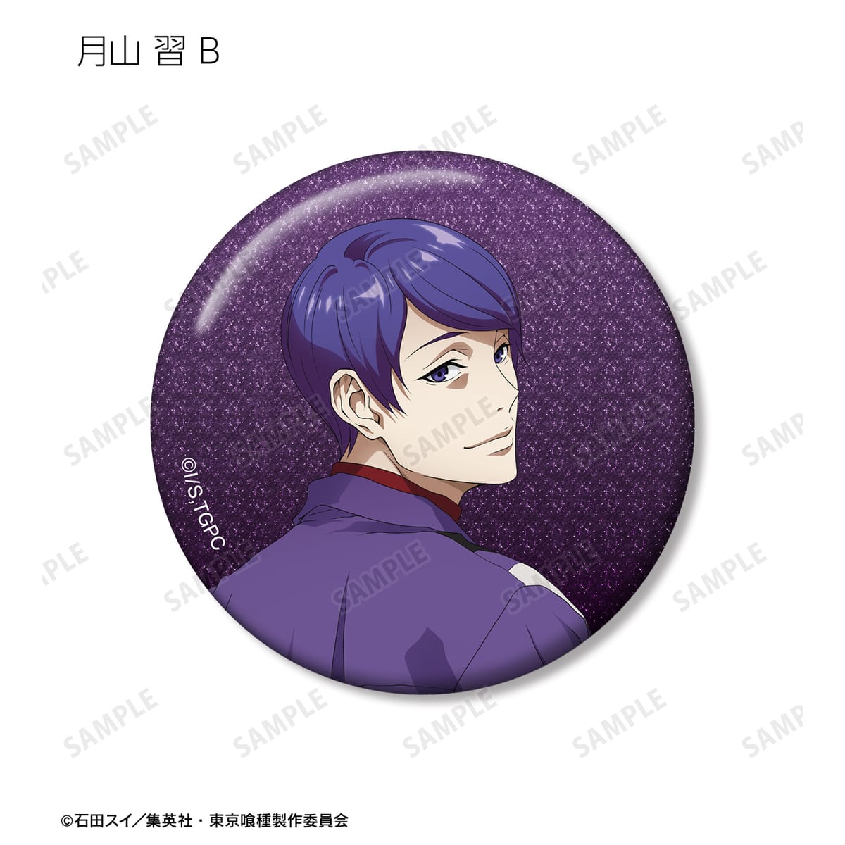 金木 研、西尾 錦、四方蓮示、月山 習、ウタ、鈴屋什造の描き下ろしイラストをグリッター加工を施した缶バッジに仕上げました。