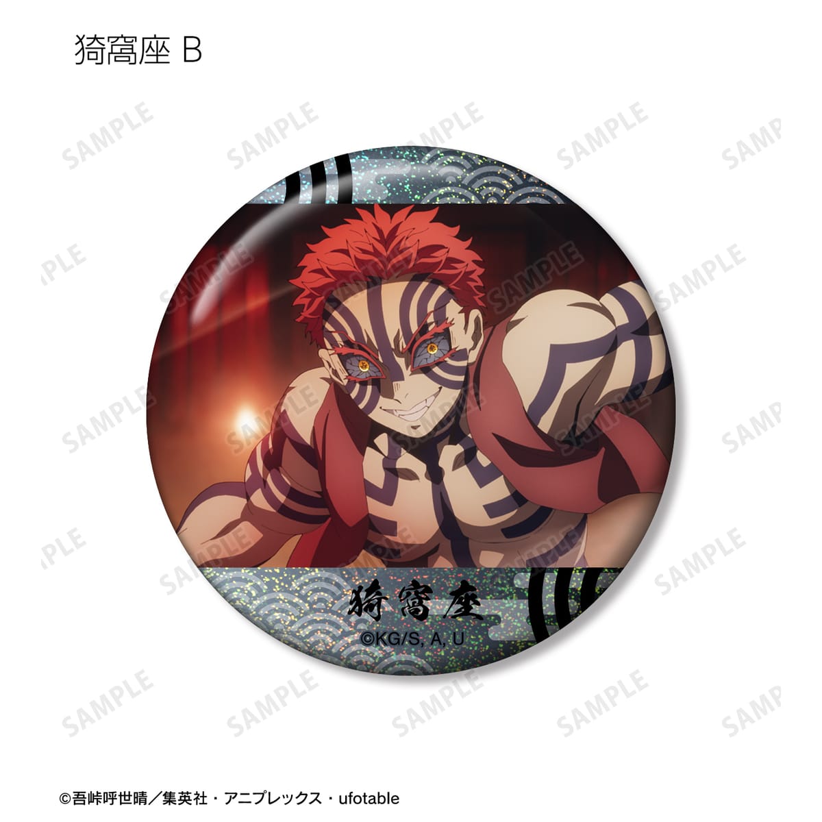 竈門炭治郎、我妻善逸、嘴平伊之助、冨岡義勇、胡蝶しのぶ、甘露寺蜜璃、時透無一郎、悲鳴嶼行冥、不死川実弥、伊黒小芭内、童磨、猗窩座、獪岳の印象的なシーンをホログラム加工を施した缶バッジに仕上げました。