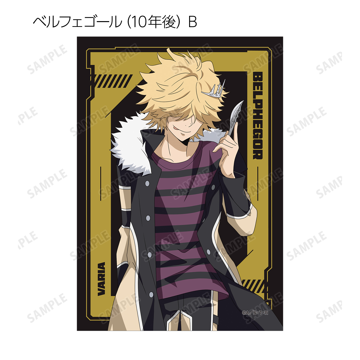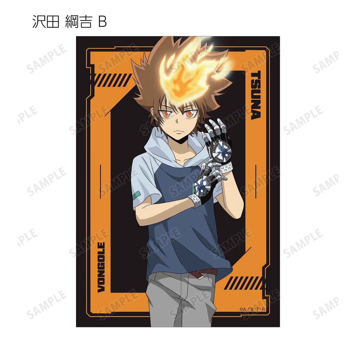 沢田 綱吉、リボーン、獄寺 隼人(10年後)、山本 武(10年後)、雲雀 恭弥(10年後)、六道 骸(10年後)、ディーノ(10年後)、XANXUS(10年後)、スペルビ・スクアーロ(10年後)、ベルフェゴール(10年後)、フラン、白蘭の描き下ろしイラストをブロマイドに仕上げました。