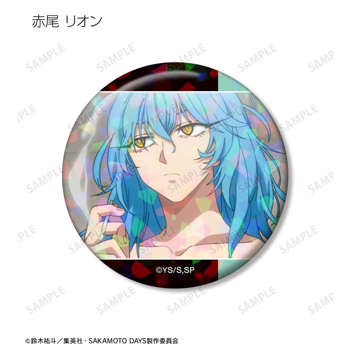 坂本 太郎、朝倉 シン、陸 少糖、眞霜 平助、南雲、神々廻、大佛、X(スラー)、楽、赤尾 晶、勢羽 真冬、虎丸 尚、赤尾 リオンの印象的なシーンをホログラム加工を施した缶バッジに仕上げました。
