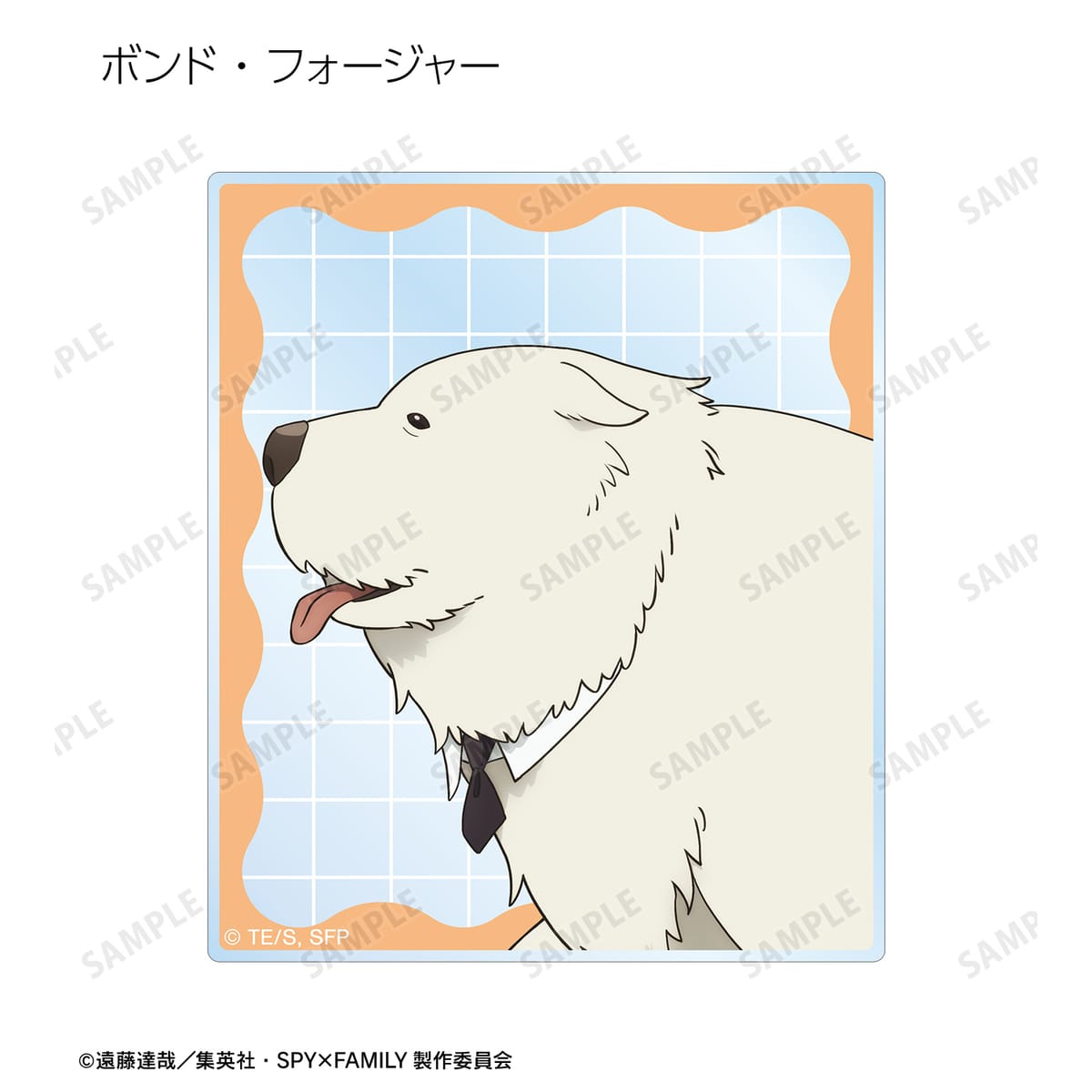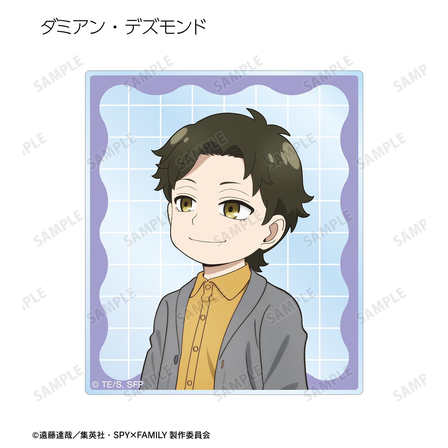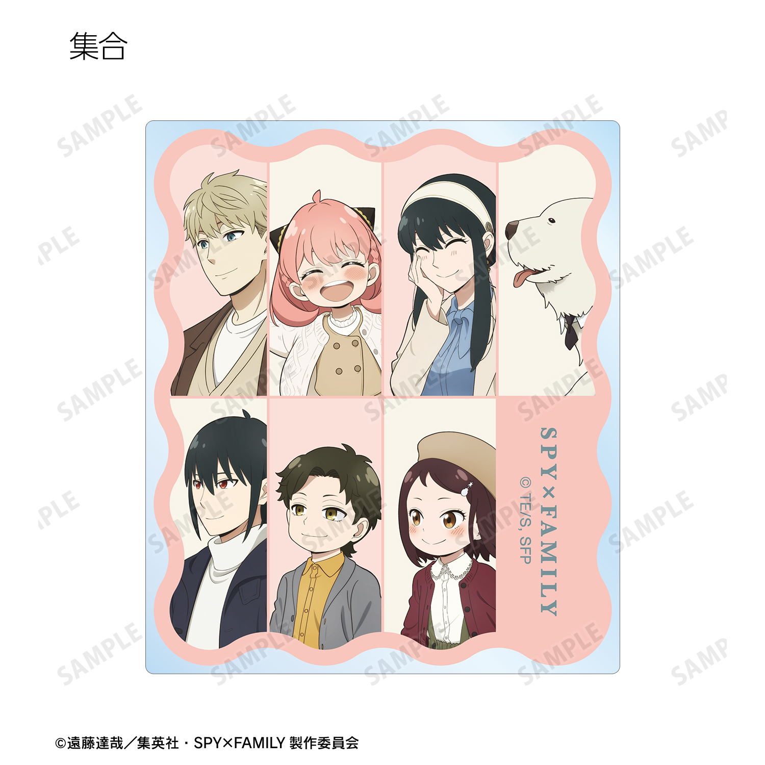 ロイド・フォージャー、アーニャ・フォージャー、ヨル・フォージャー、ボンド・フォージャー、ユーリ・ブライア、ダミアン・デズモンド、ベッキー・ブラックベルの描き下ろしイラストをアクリルカードに仕上げました。