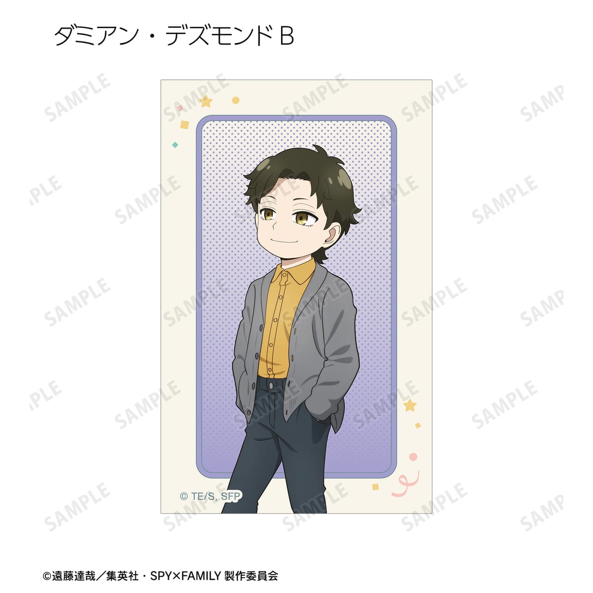 ロイド・フォージャー、アーニャ・フォージャー、ヨル・フォージャー、ボンド・フォージャー、ユーリ・ブライア、ダミアン・デズモンド、ベッキー・ブラックベルの描き下ろしイラストをイラストカードに仕上げました。