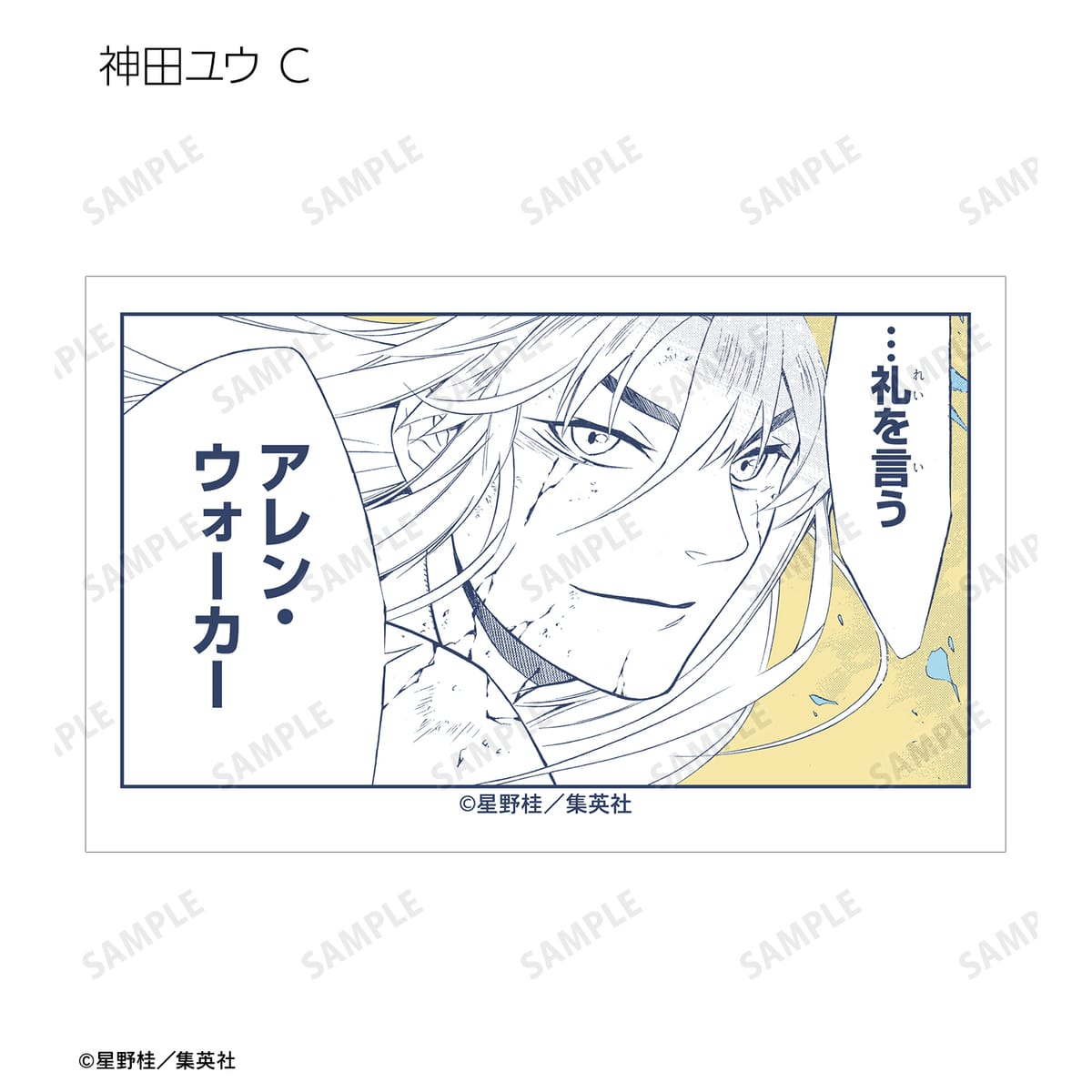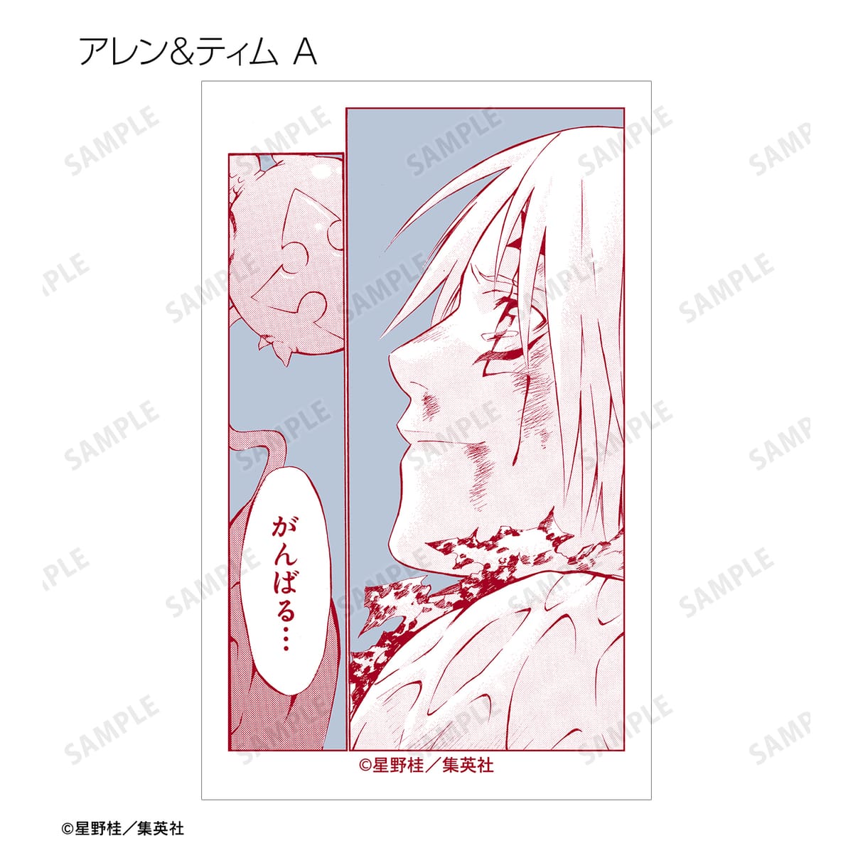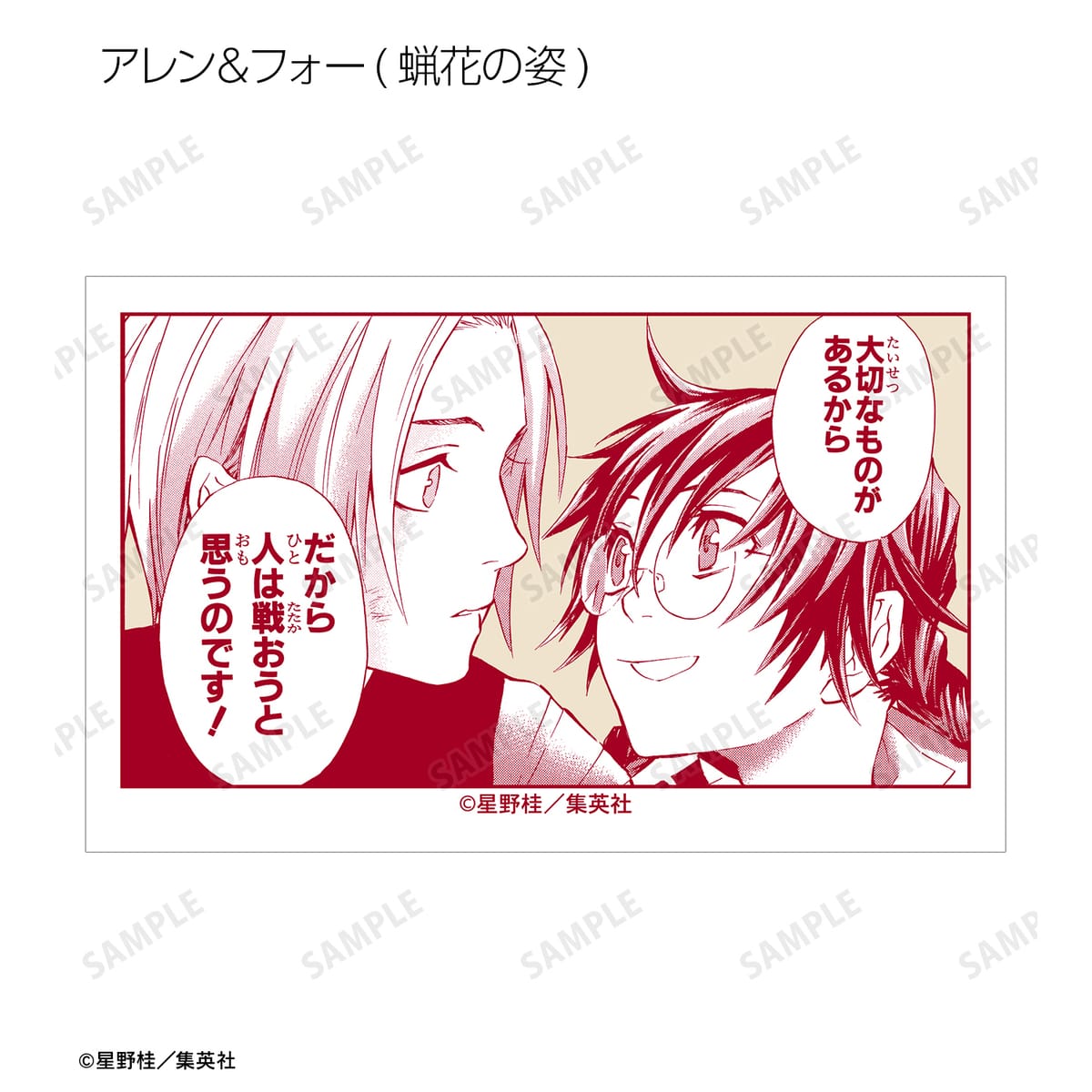 アレン・ウォーカー、ティムキャンピー、フォー(蝋花の姿)、コムリン、神田ユウ、アルマ、ラビ、ブックマン、リナリー・リー、アレイスター・クロウリー三世、ミランダ・ロットー、ノイズ・マリ、クロス・マリアン、聖母ノ柩、コムイ・リー、科学班、ハワード・リンク、ロード・キャメロット、ティキ・ミック、ジャスデビ、ゴーレムの原作コマ、カラーイラストをイラストカードに仕上げました。