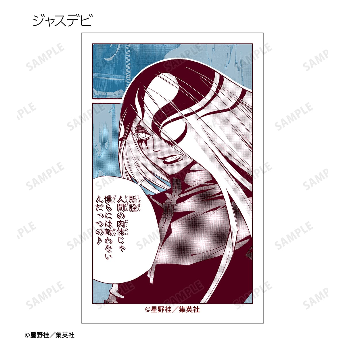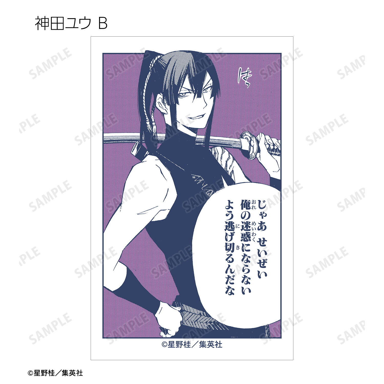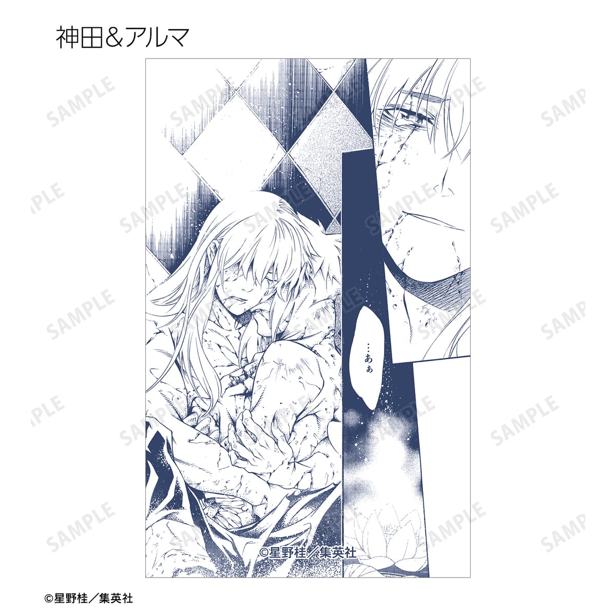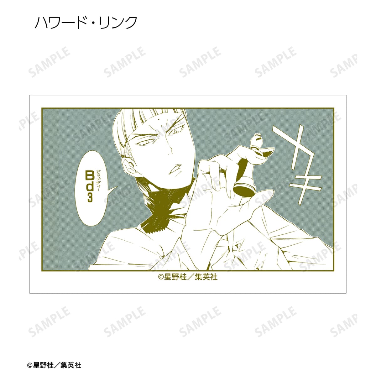 アレン・ウォーカー、ティムキャンピー、フォー(蝋花の姿)、コムリン、神田ユウ、アルマ、ラビ、ブックマン、リナリー・リー、アレイスター・クロウリー三世、ミランダ・ロットー、ノイズ・マリ、クロス・マリアン、聖母ノ柩、コムイ・リー、科学班、ハワード・リンク、ロード・キャメロット、ティキ・ミック、ジャスデビ、ゴーレムの原作コマ、カラーイラストをイラストカードに仕上げました。