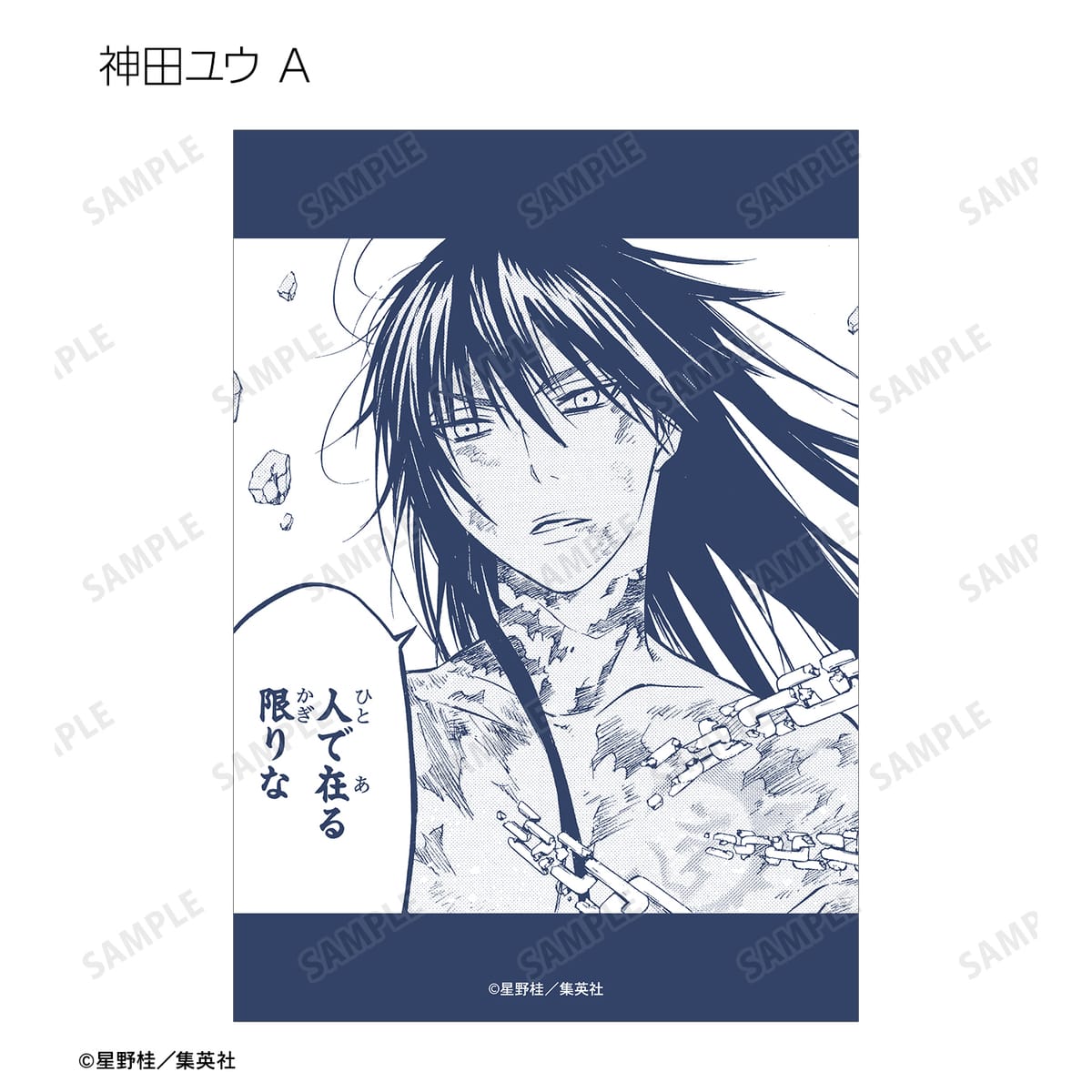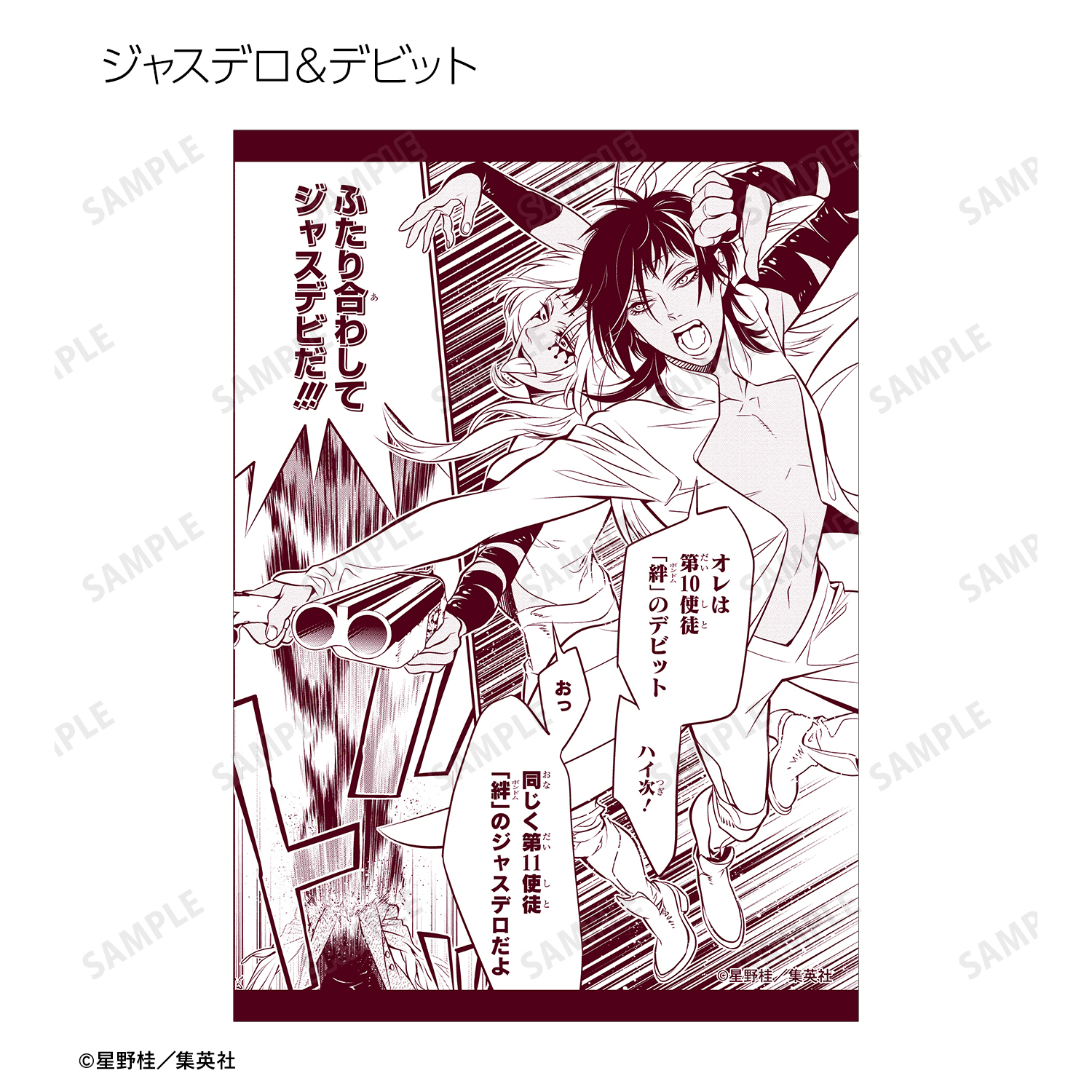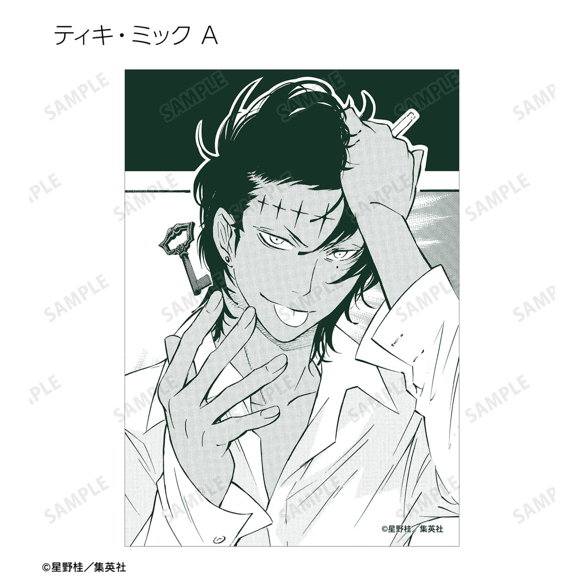 アレン・ウォーカー、クロス・マリアン、神田ユウ、ラビ、リナリー・リー、アレイスター・クロウリー三世、ミランダ・ロットー、ティモシー・ハースト、憑神、ティムキャンピー、ハワード・リンク、ロード・キャメロット、ティキ・ミック、ジャスデロ、デビット、ネア=D=キャンベル、ブックマン、先代ブックマンJr.の原作コマ、カラーイラストをブロマイドに仕上げました。