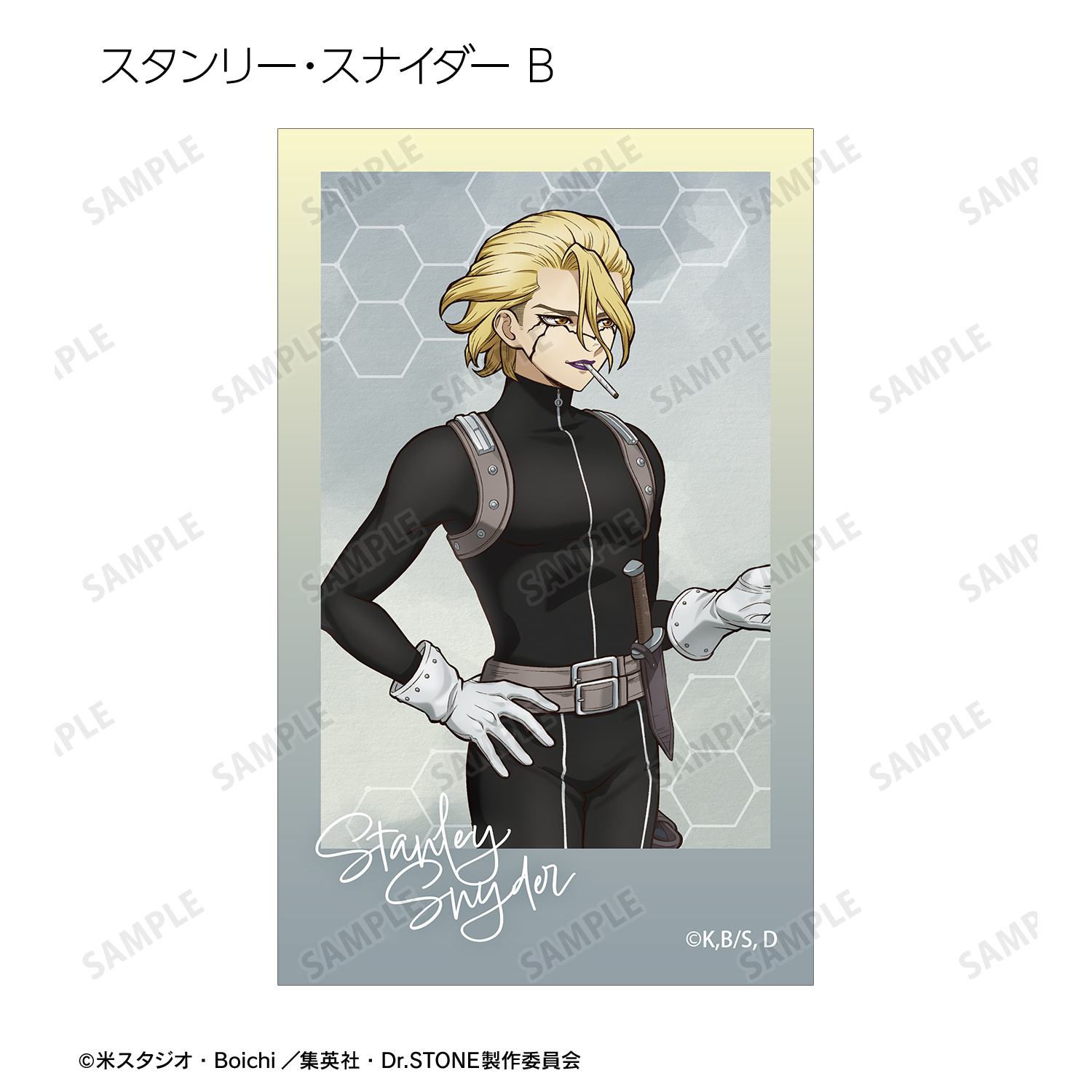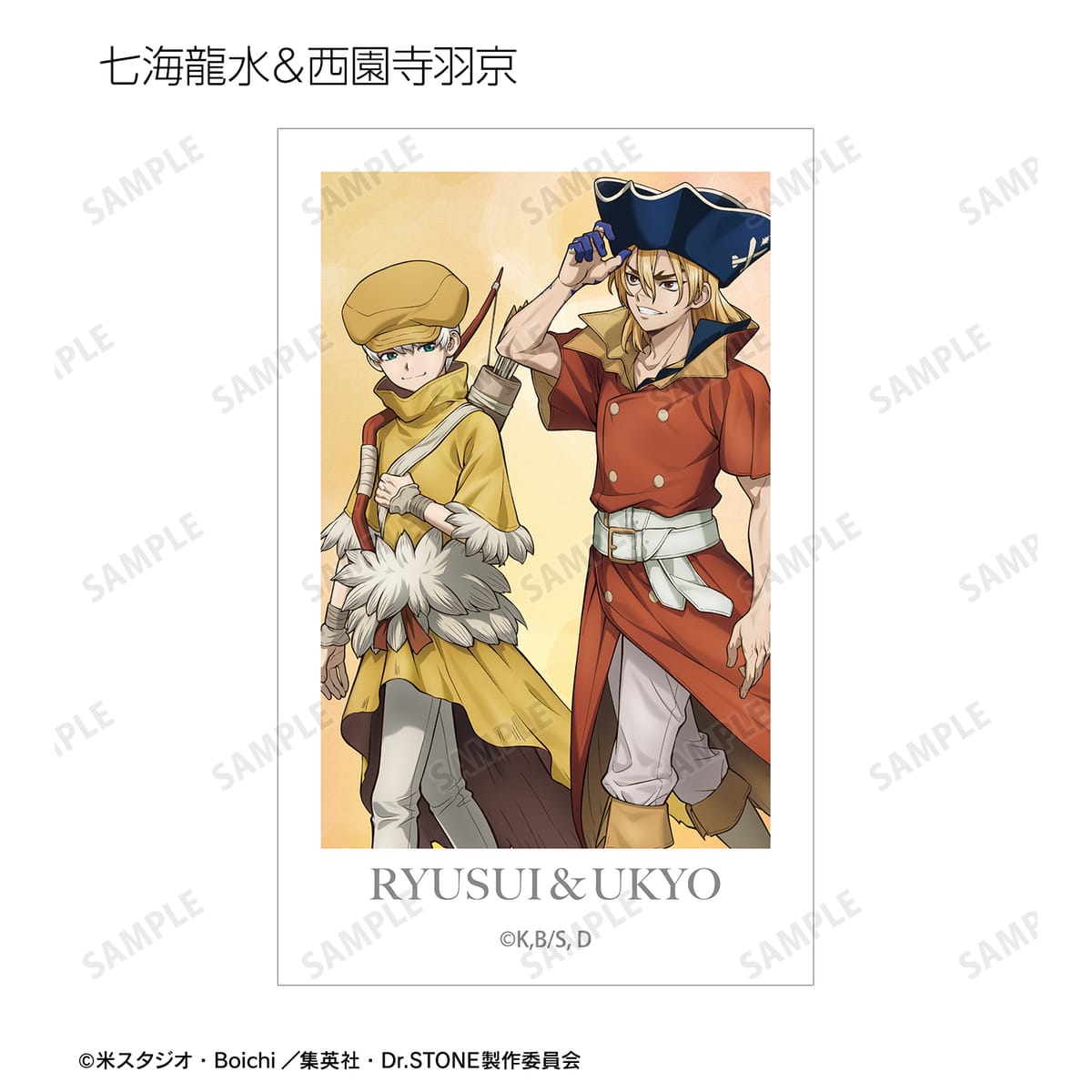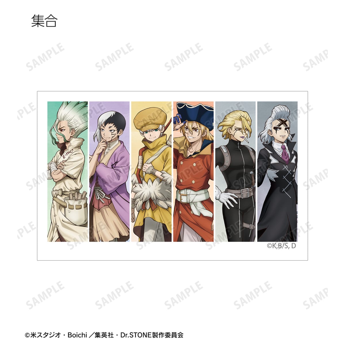 石神千空、あさぎりゲン、七海龍水、西園寺羽京、Dr.ゼノ、スタンリー・スナイダーの描き下ろしイラストをイラストカードに仕上げました。