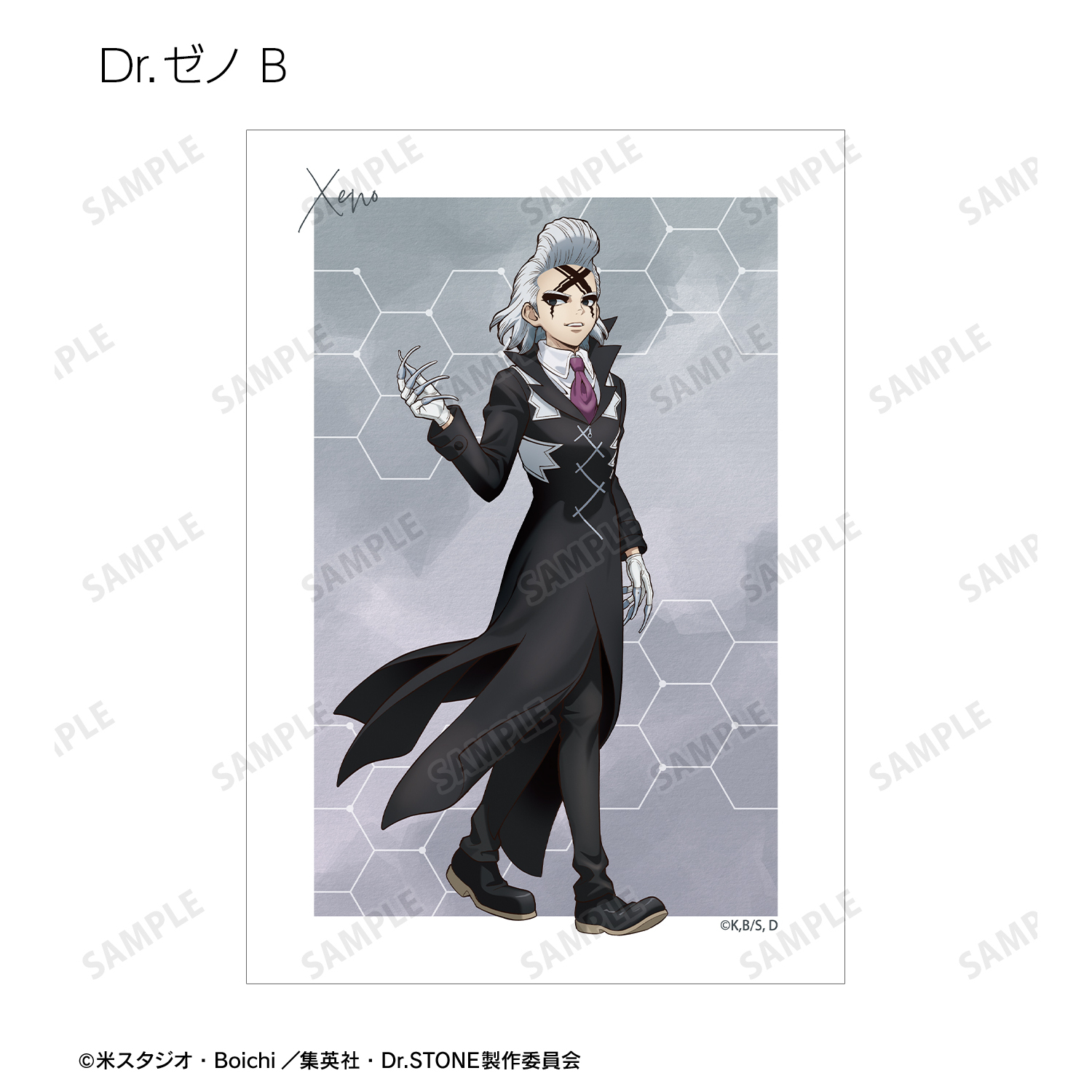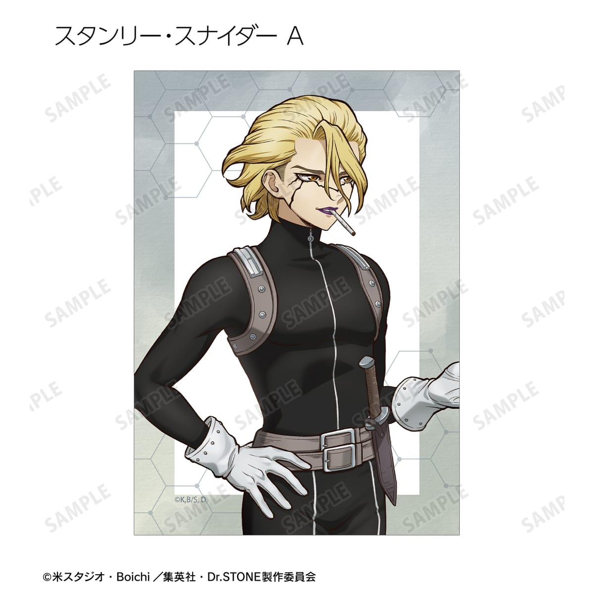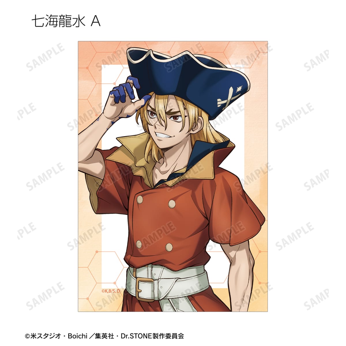 石神千空、あさぎりゲン、七海龍水、西園寺羽京、Dr.ゼノ、スタンリー・スナイダーの描き下ろしイラストをブロマイドに仕上げました。