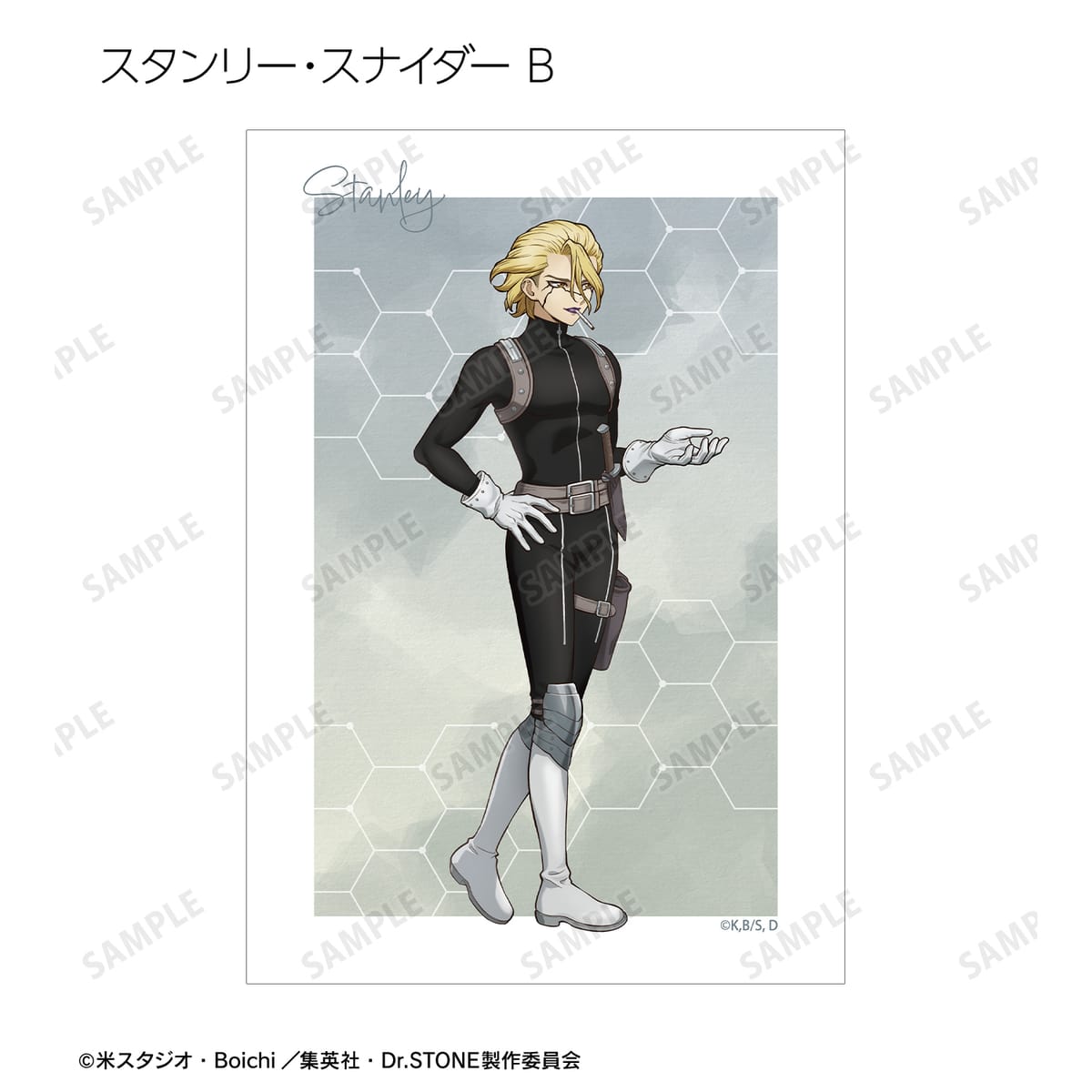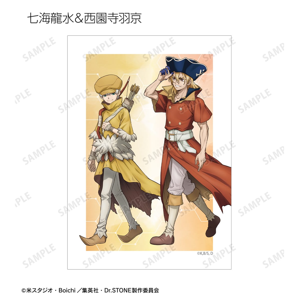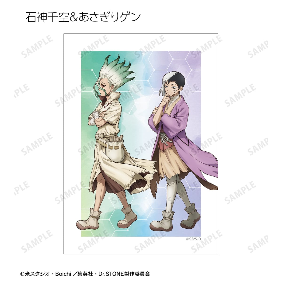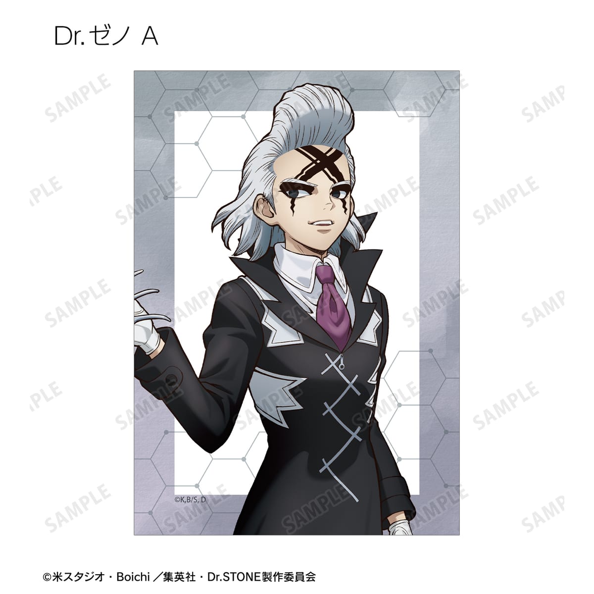 石神千空、あさぎりゲン、七海龍水、西園寺羽京、Dr.ゼノ、スタンリー・スナイダーの描き下ろしイラストをブロマイドに仕上げました。