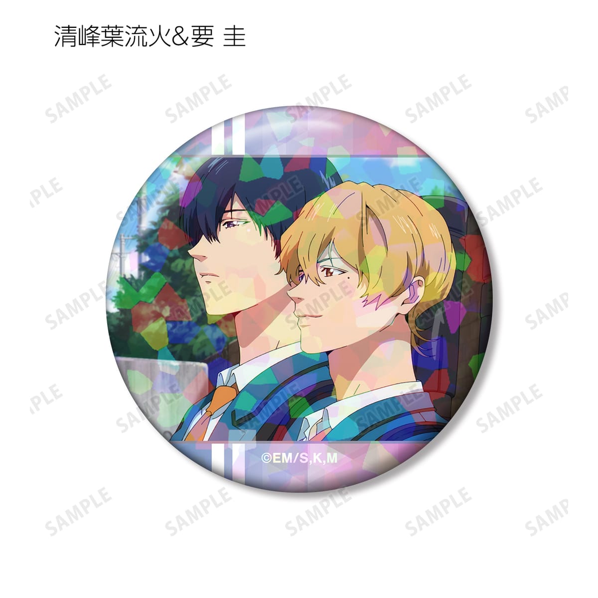 清峰葉流火、要 圭、藤堂 葵、千早瞬平、山田太郎、土屋和季、国都英一郎、巻田広伸、桐島秋斗の印象的なシーンをホログラム加工を施した缶バッジに仕上げました。