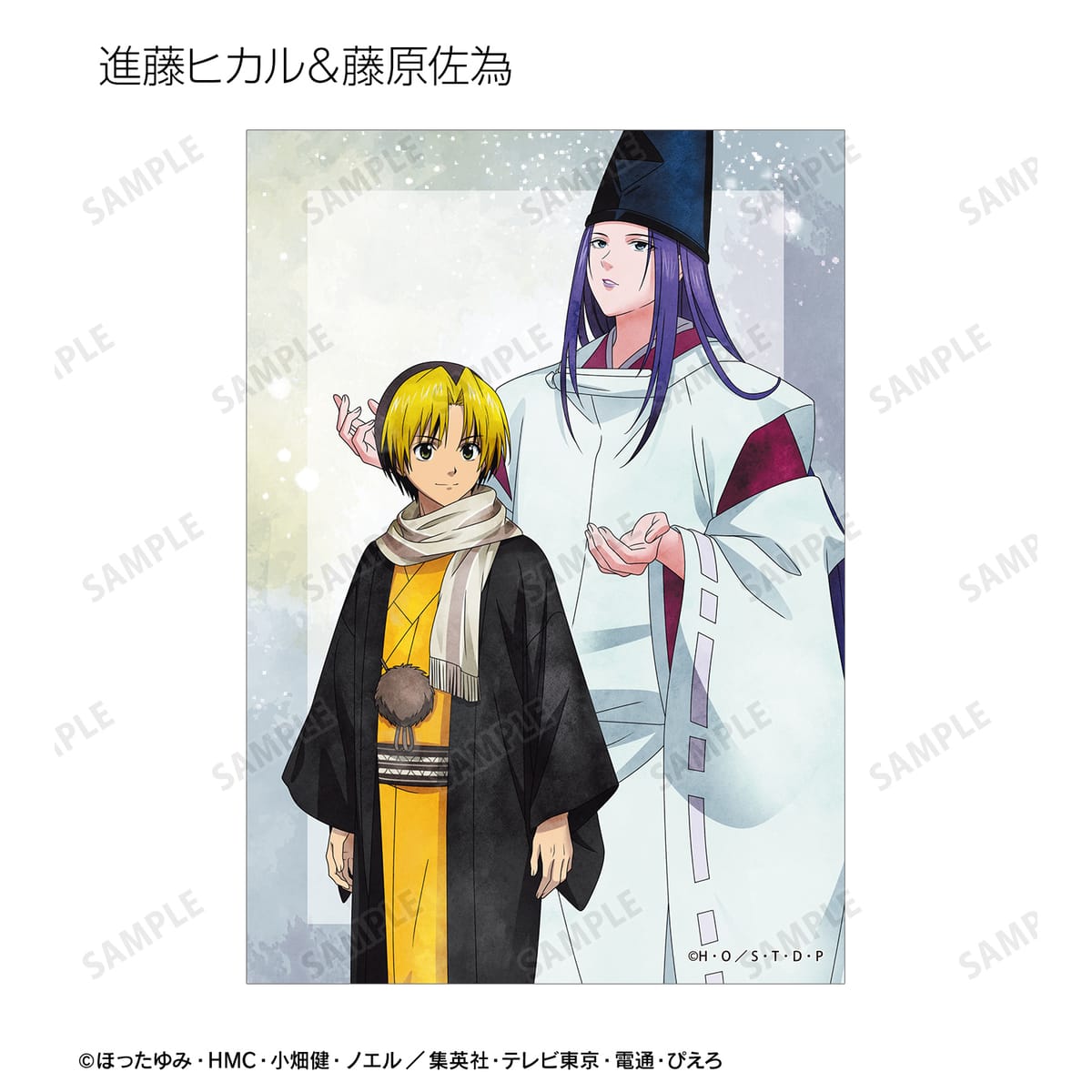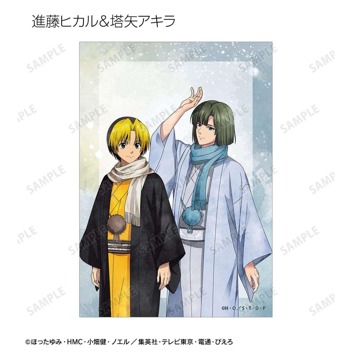 進藤ヒカル、藤原佐為、塔矢アキラ、加賀鉄男、三谷祐輝、和谷義高、伊角慎一郎の描き下ろしイラストをブロマイドに仕上げました。