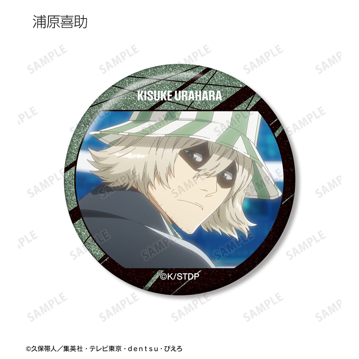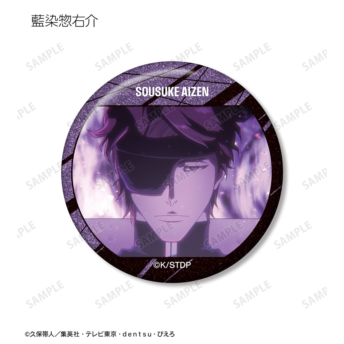 黒崎一護、浦原喜助、四楓院夜一、京楽春水、平子真子、阿散井恋次、更木剣八、涅マユリ、藍染惣右介、グリムジョー・ジャガージャック、毒ヶ峰リルカ、ユーハバッハ、石田雨竜、ユーグラム・ハッシュヴァルト、バズビーの印象的なシーンをグリッター加工を施した缶バッジに仕上げました。