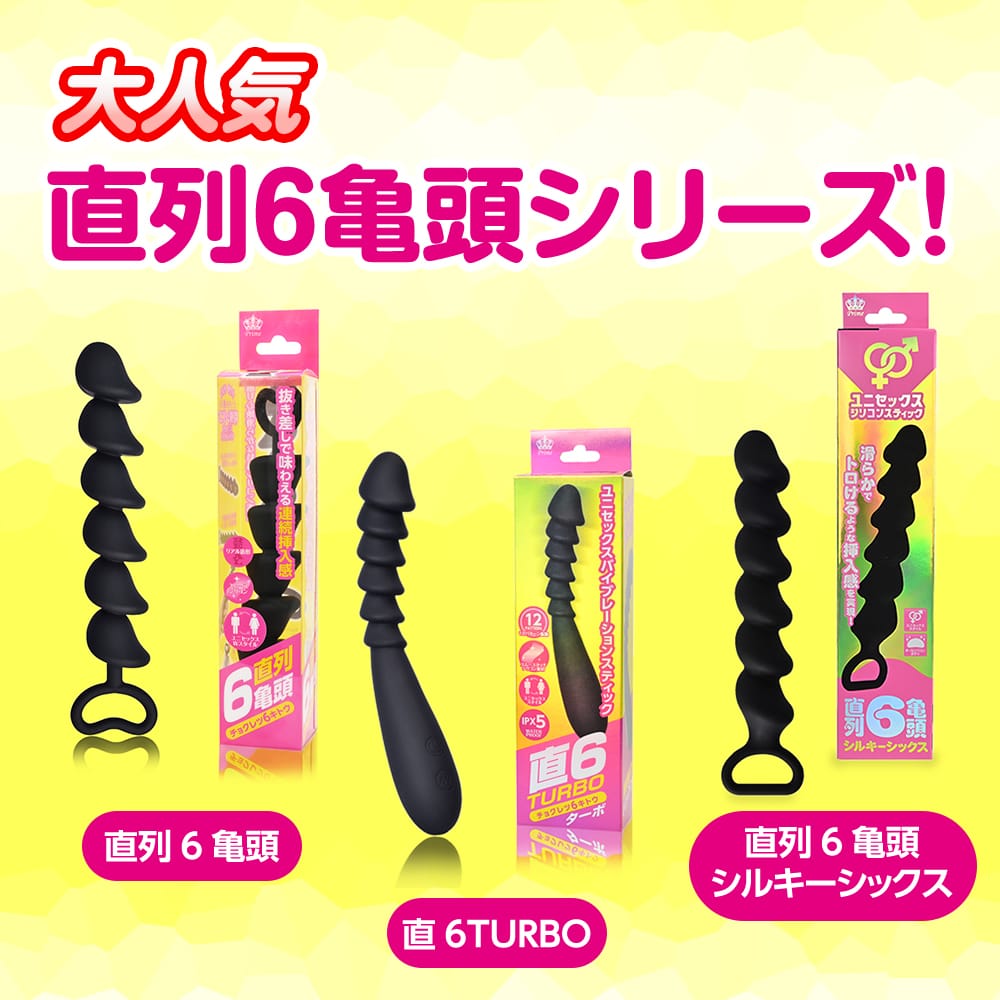 大人気シリーズ【直列6亀〇】が使いやすくお手軽なラバービーズタイプで登場!挿入時の抵抗が少ないのにしっかりと引っかかり刺激が楽しめる実用性抜群の亀〇形状の6連撃はそのままに、柔らかくローションのノリの良い高品質TPE素材を採用してより気軽にアナポコ快感が味わえます。少しずつ大きくなっていく亀〇ビーズ刺激は球体とは全然違う快感を演出します。