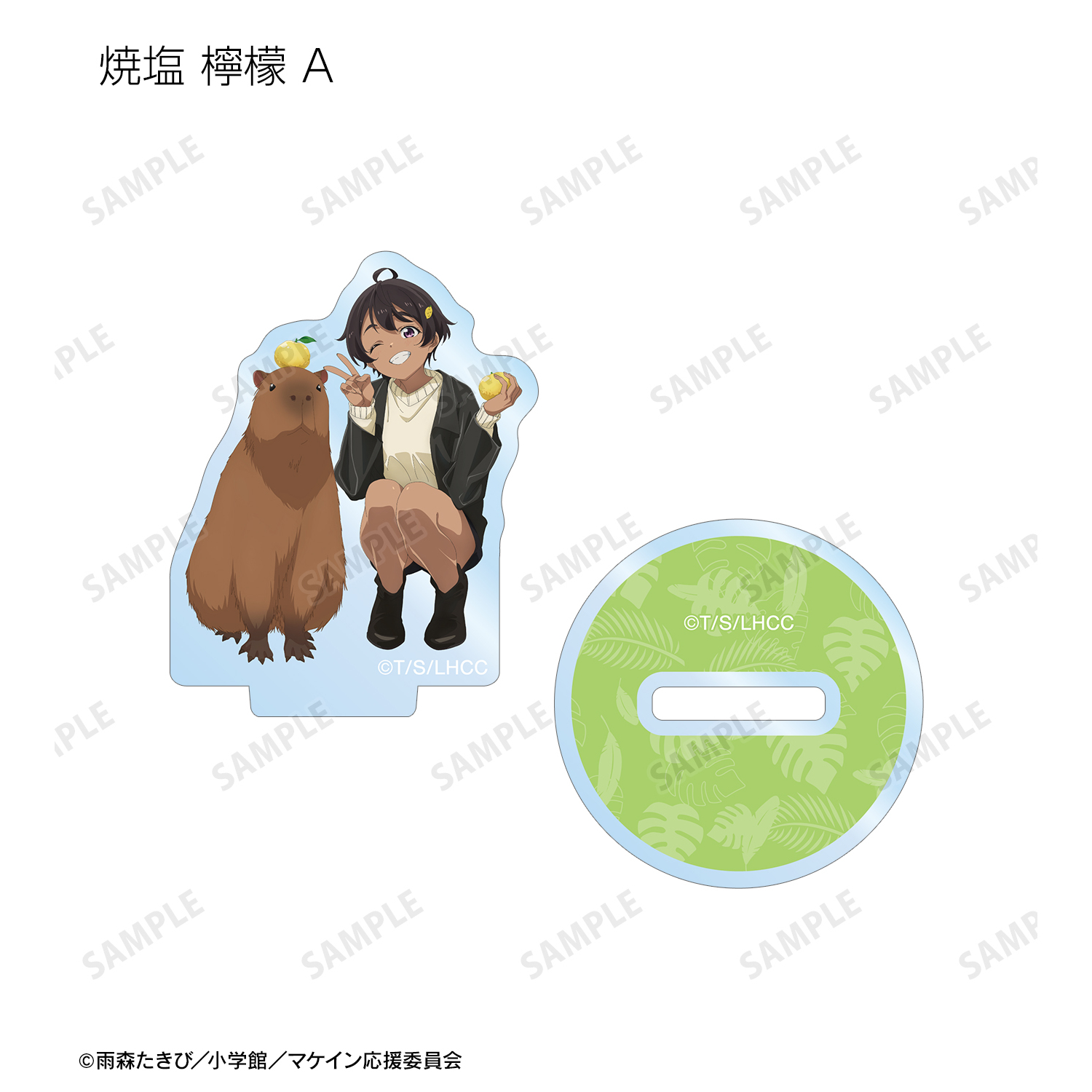 温水 和彦、八奈見 杏菜、焼塩 檸檬、小鞠 知花、温水 佳樹の描き下ろしイラストをアクリルスタンドに仕上げました。
