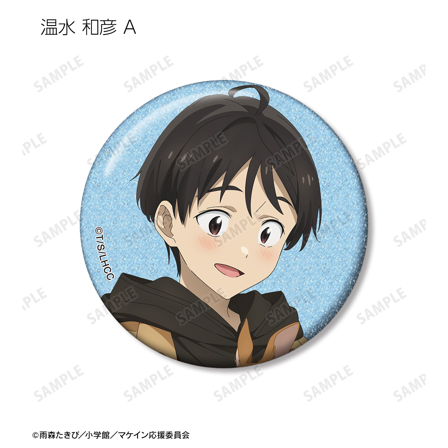 温水 和彦、八奈見 杏菜、焼塩 檸檬、小鞠 知花、温水 佳樹の描き下ろしイラストをグリッター加工を施した缶バッジに仕上げました。