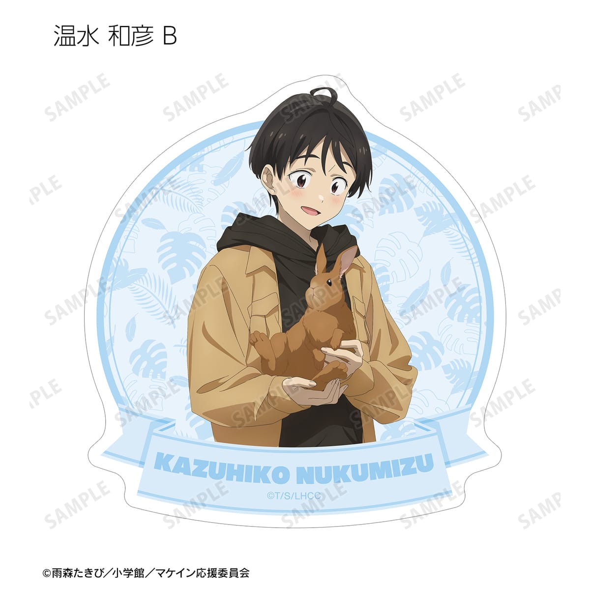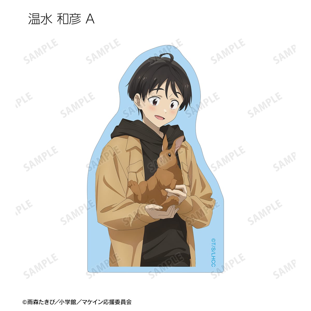 温水 和彦、八奈見 杏菜、焼塩 檸檬、小鞠 知花、温水 佳樹の描き下ろしイラストをダイカットのステッカーに仕上げました。