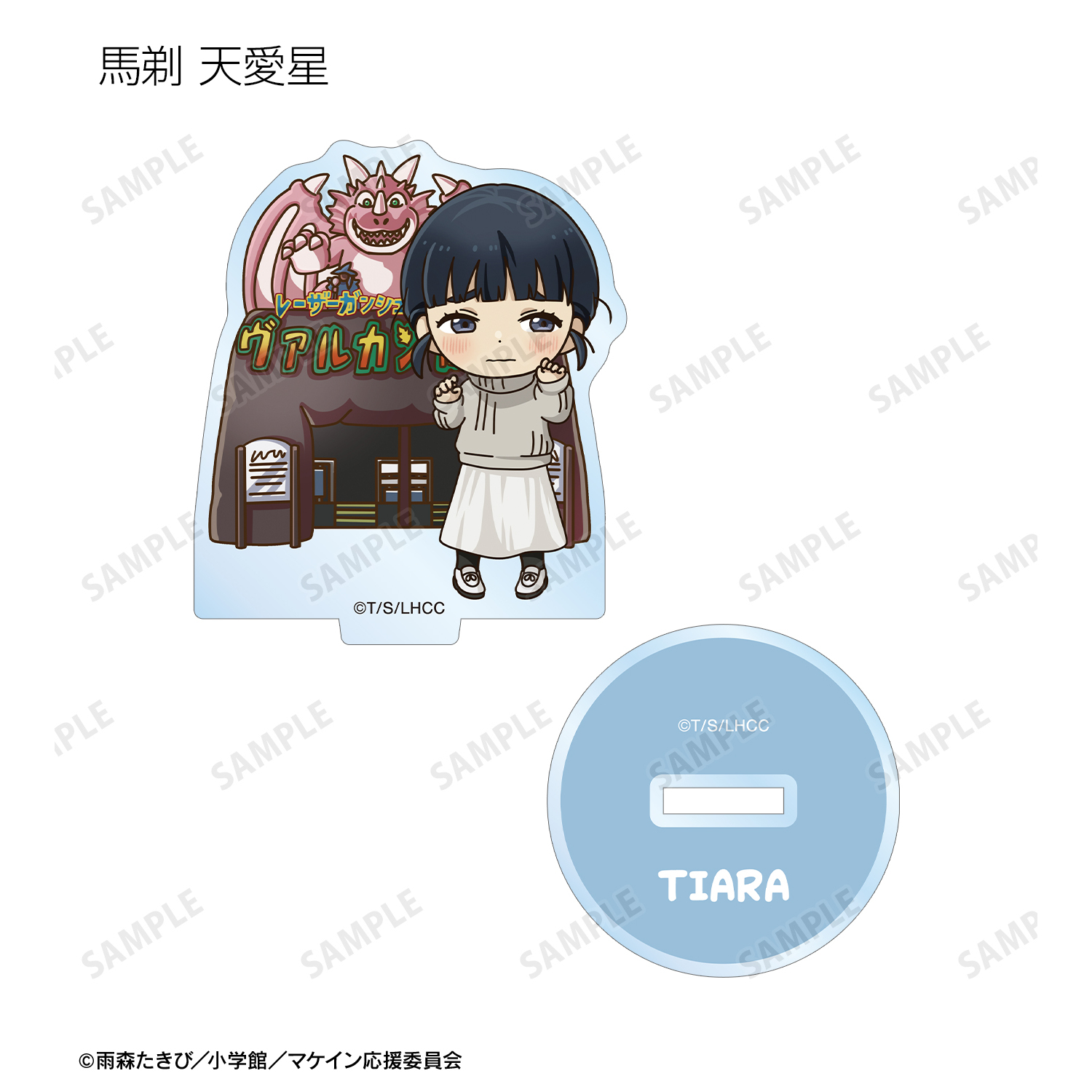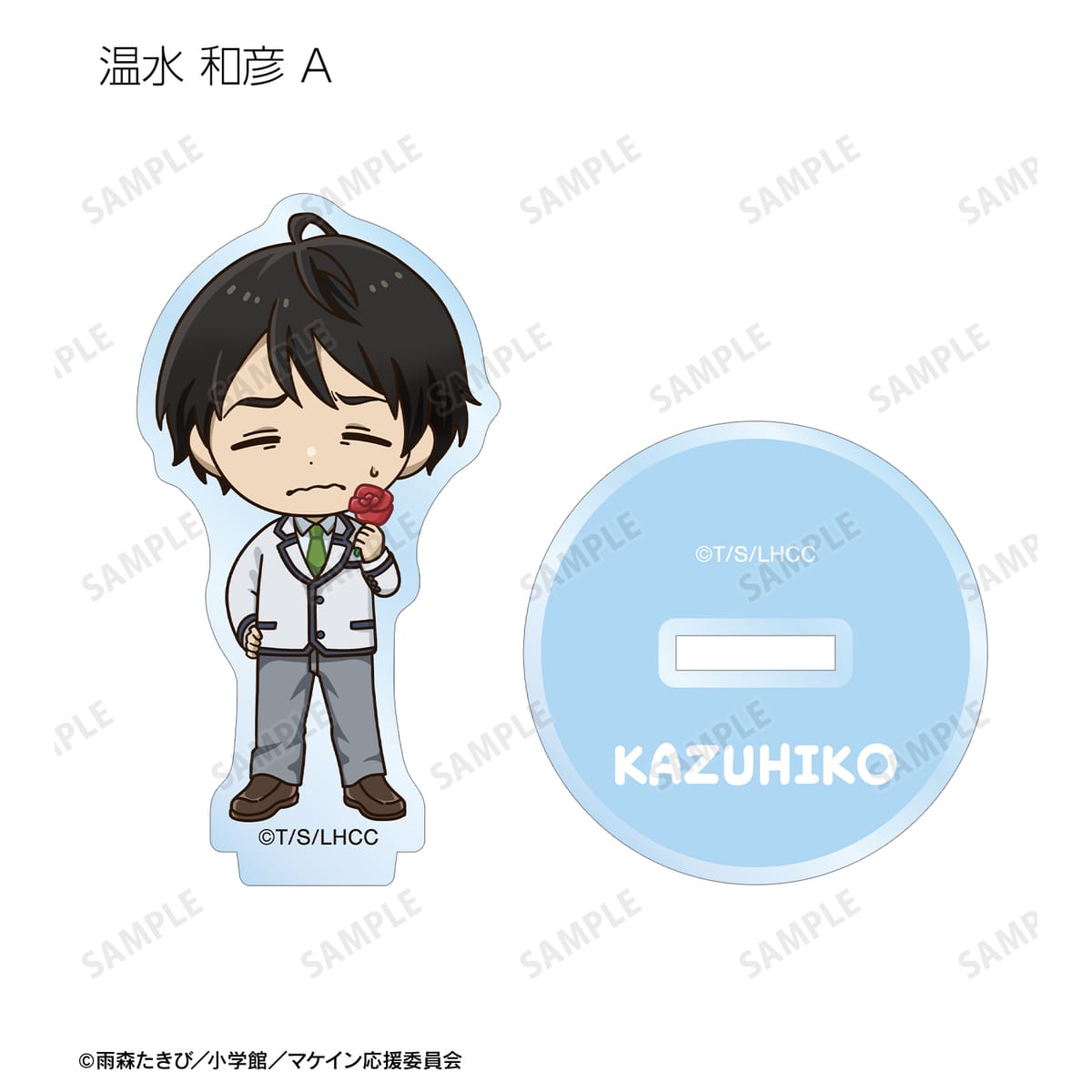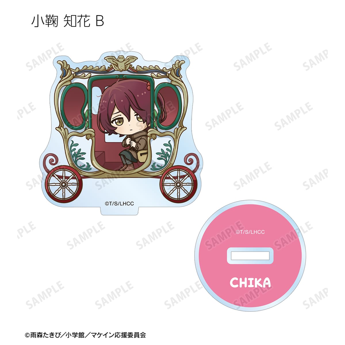 温水 和彦、八奈見 杏菜、焼塩 檸檬、小鞠 知花、温水 佳樹、月之木 古都、姫宮 華恋、朝雲 千早、志喜屋 夢子、放虎原 ひばり、馬剃 天愛星の描き起こしちびキャライラストをメインにデザインし、アクリルスタンドに仕上げました。