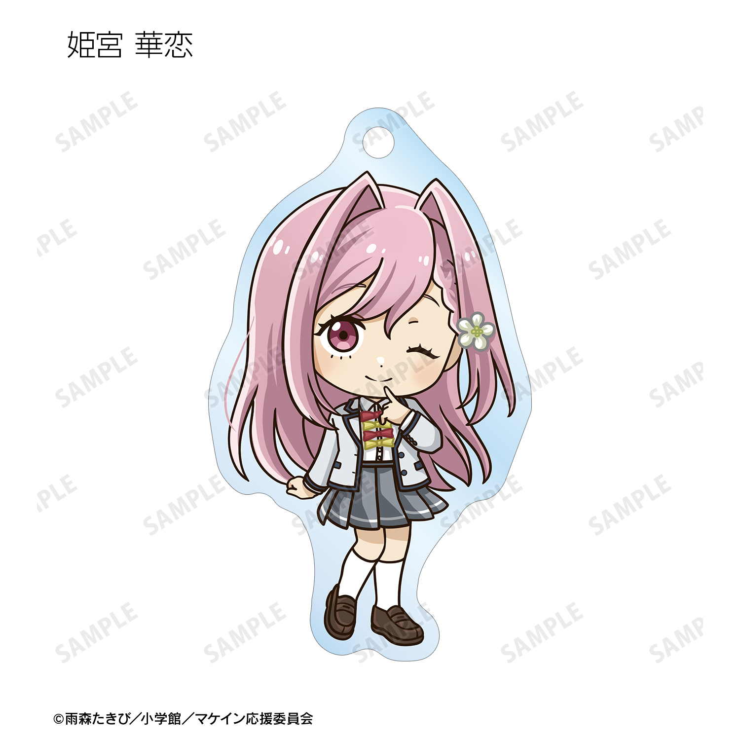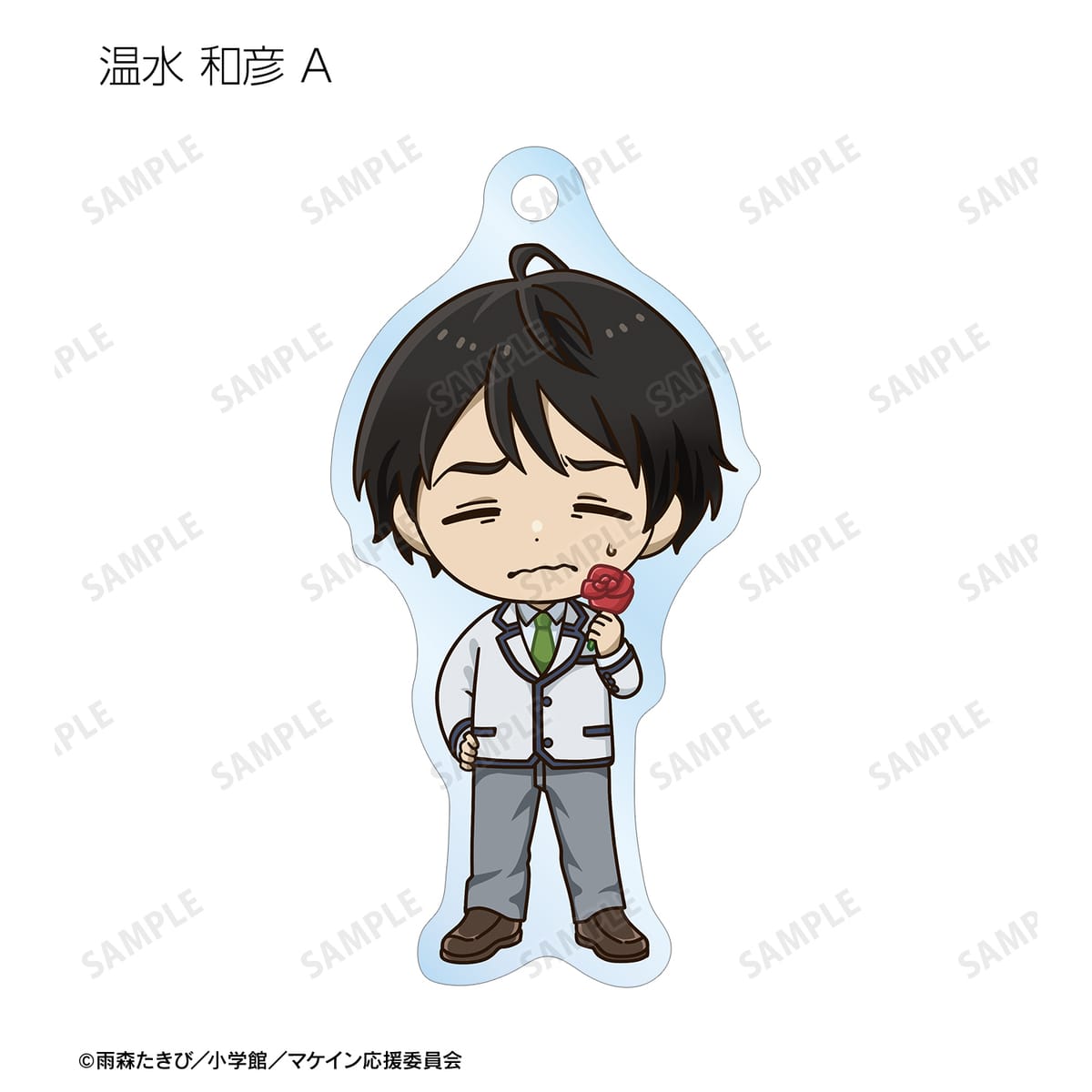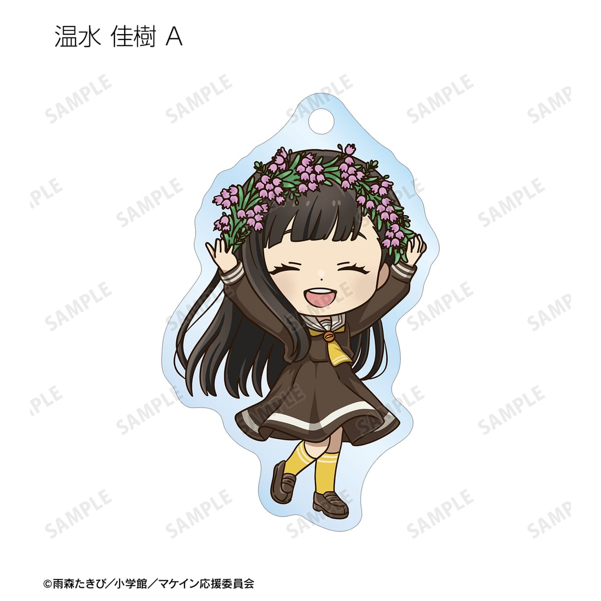 温水 和彦、八奈見 杏菜、焼塩 檸檬、小鞠 知花、温水 佳樹、月之木 古都、姫宮 華恋、朝雲 千早、志喜屋 夢子、放虎原 ひばり、馬剃 天愛星の描き起こしちびキャライラストをメインにデザインし、アクリルキーホルダーに仕上げました。