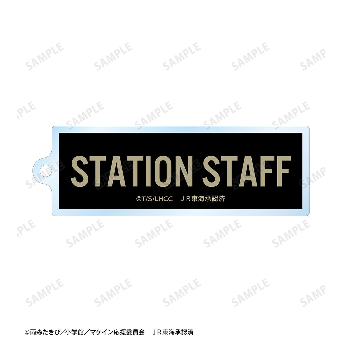小鞠 知花の描き下ろしイラスト、STATION STAFFの文字を、キーホルダーパーツがワイヤー仕様となっている、BIGなアクリルキーホルダーに仕上げました。