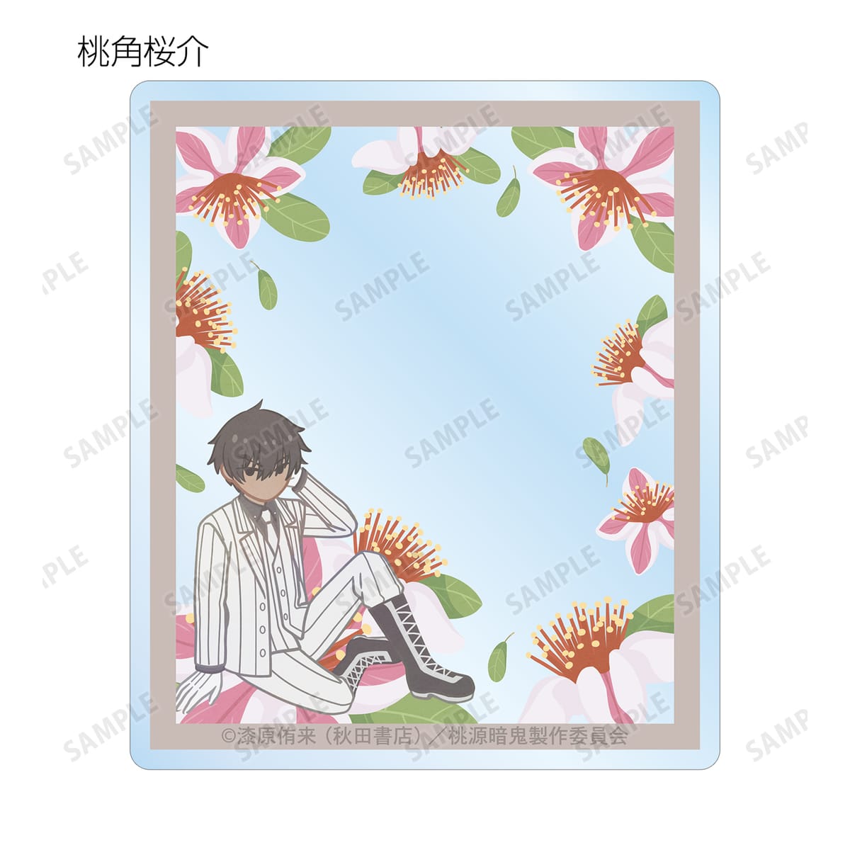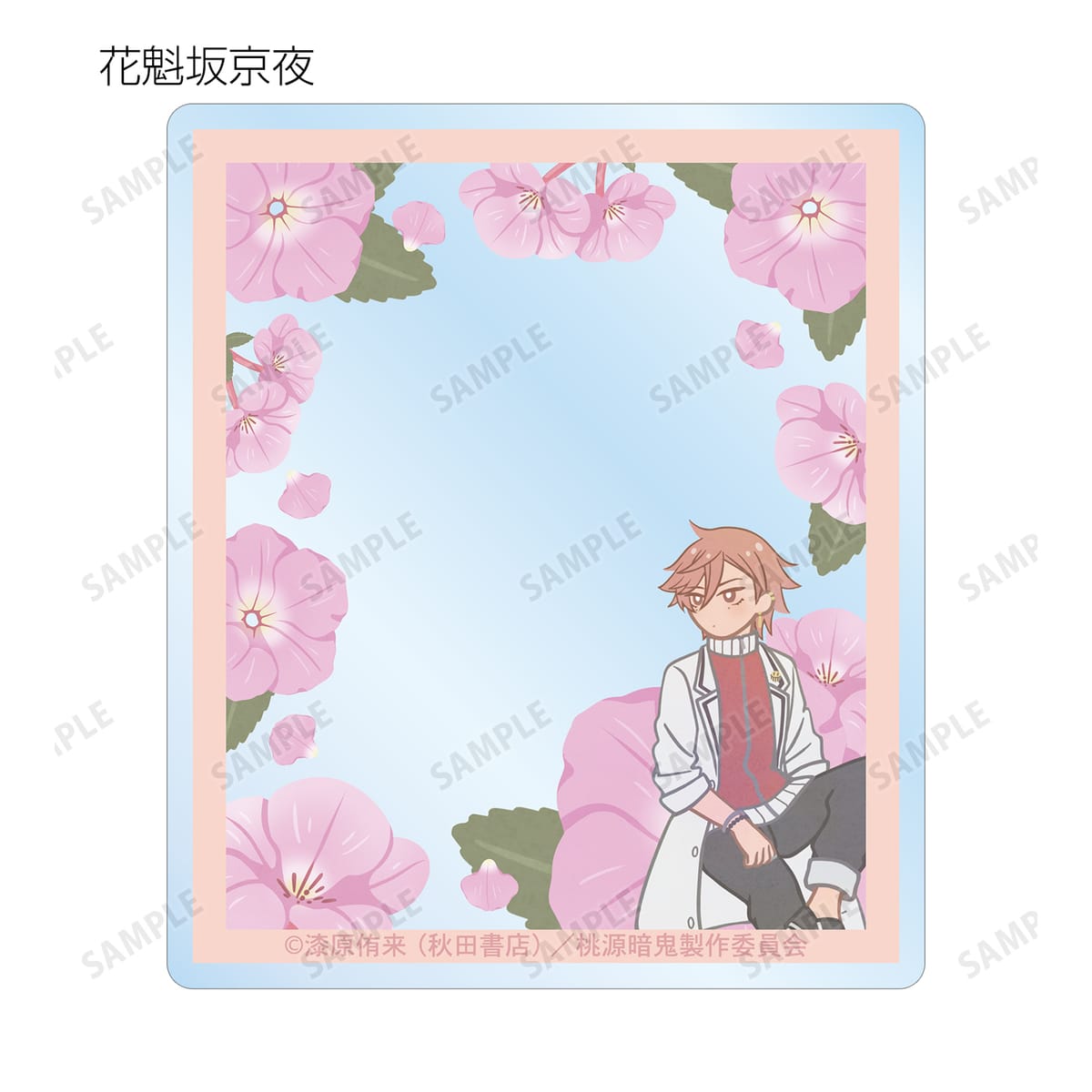 一ノ瀬四季、無陀野無人、皇后崎 迅、花魁坂京夜、淀川真澄、桃寺神門、桃華月詠、桃角桜介のイラストをボタニカルデザインに落とし込んで繊細なタッチで新たに描き起こし、アクリルカードに仕上げました。