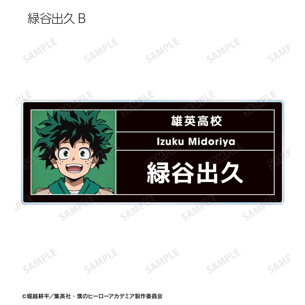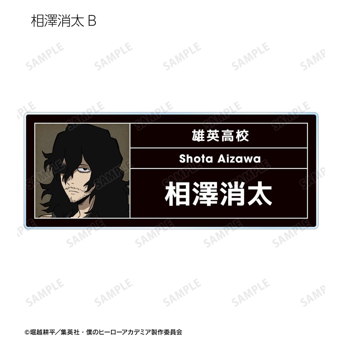 緑谷出久、爆豪勝己、麗日お茶子、轟焦凍、心操人使、相澤消太の描き下ろしビジュアルをアクリルネームプレートに仕上げました。