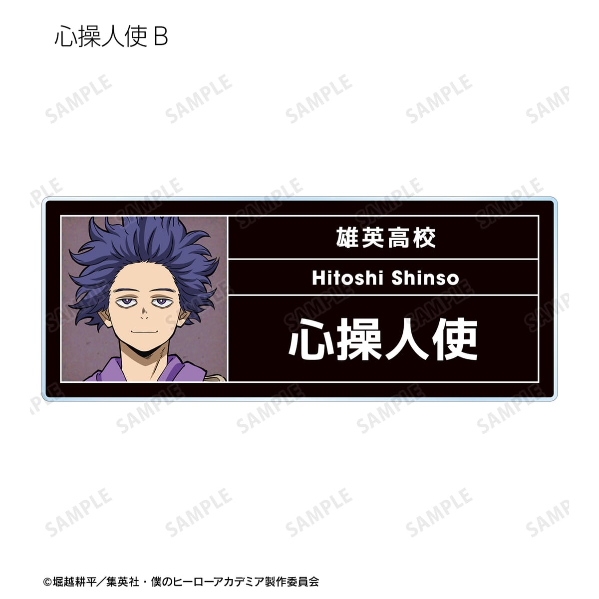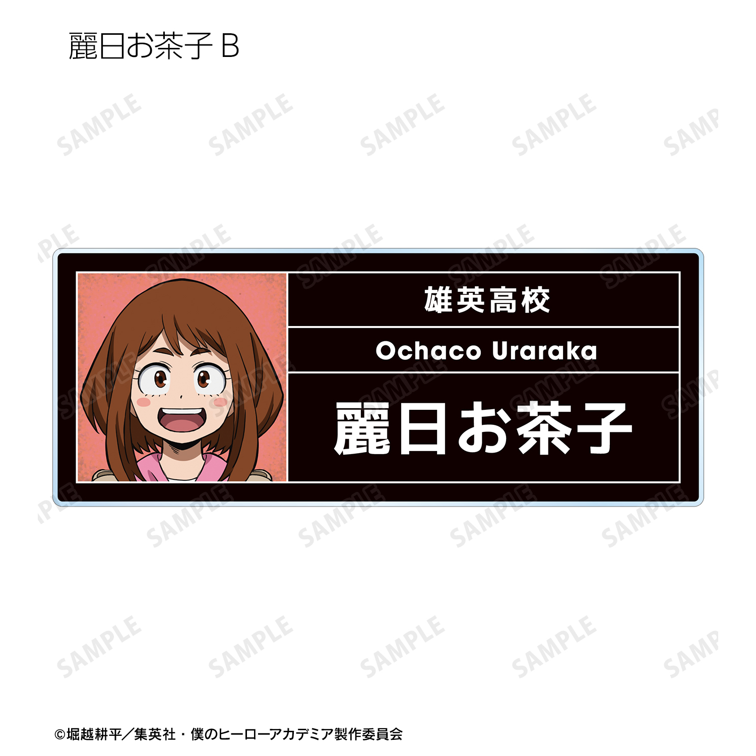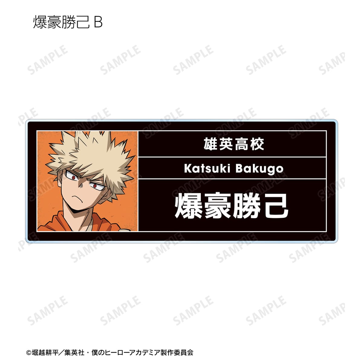 緑谷出久、爆豪勝己、麗日お茶子、轟焦凍、心操人使、相澤消太の描き下ろしビジュアルをアクリルネームプレートに仕上げました。
