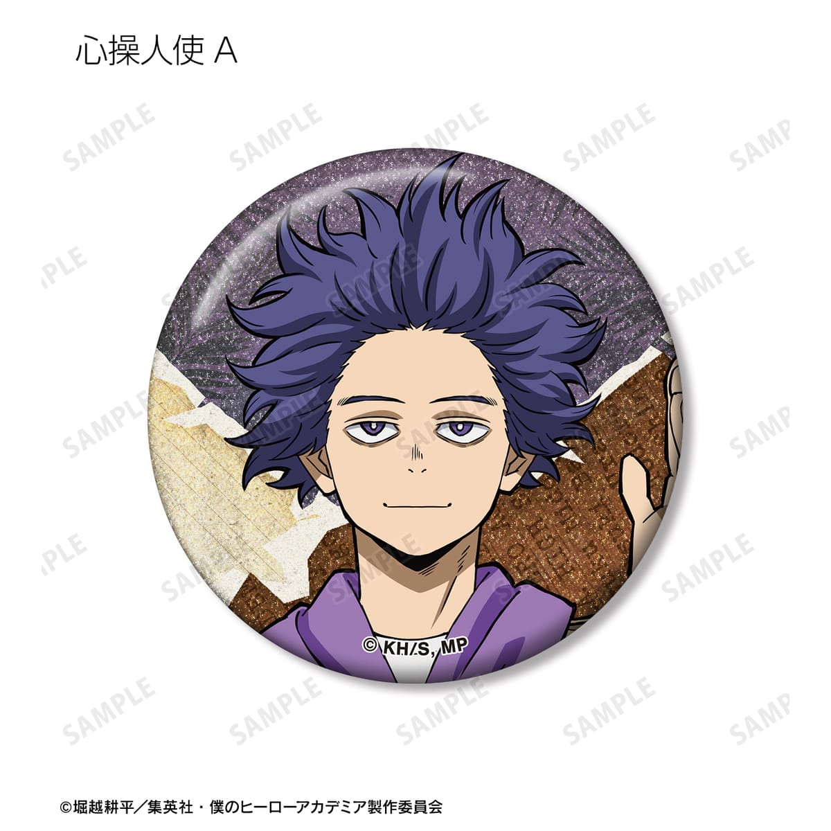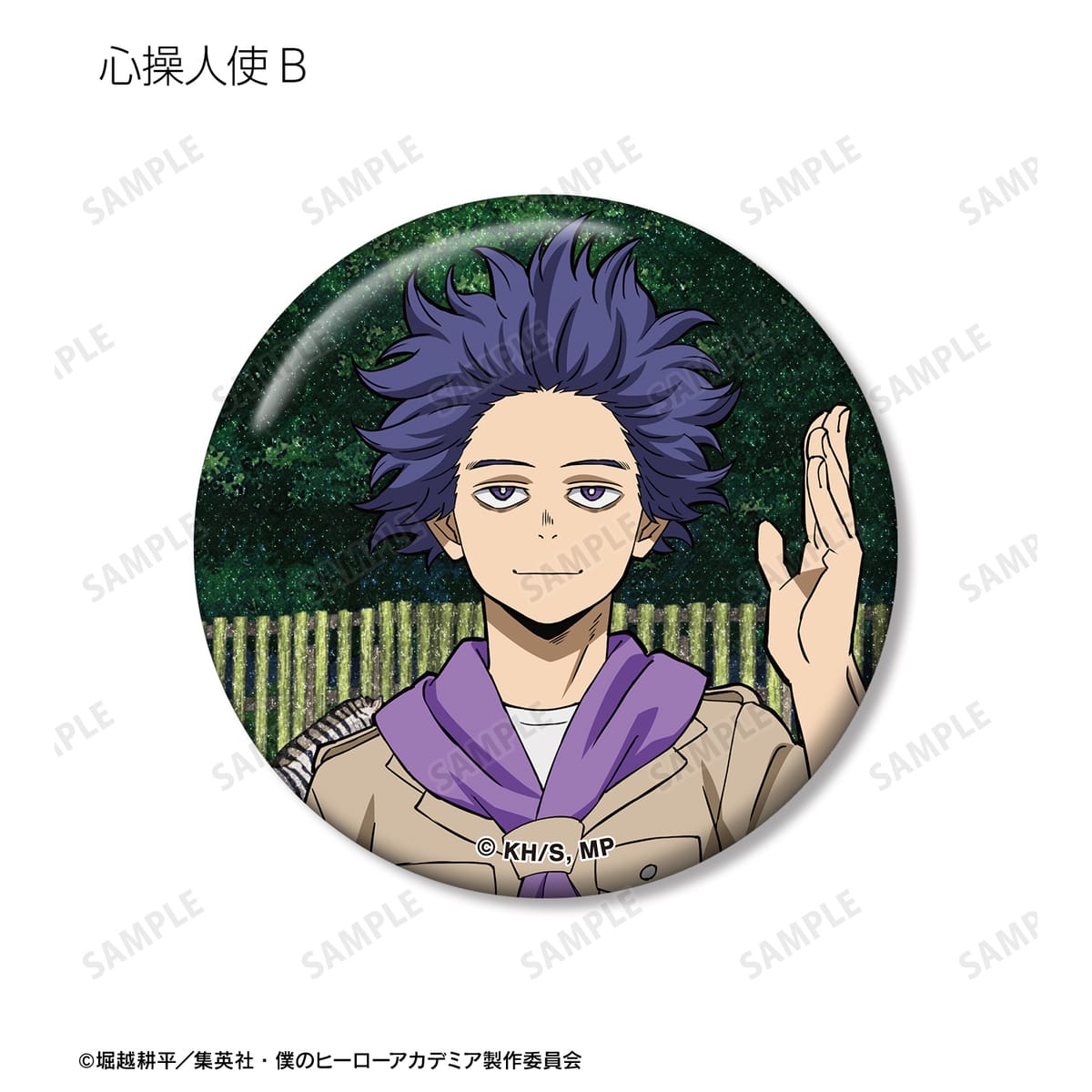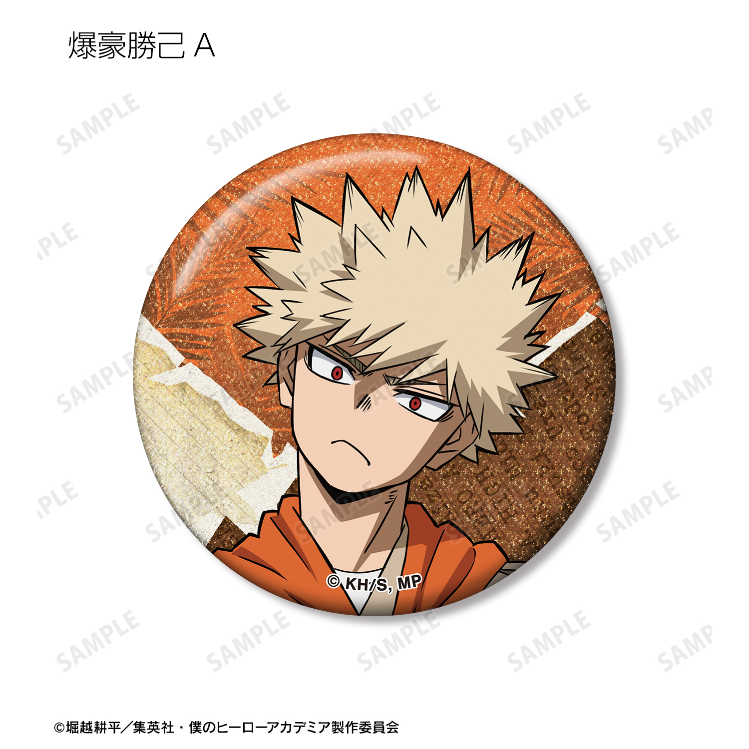 緑谷出久、爆豪勝己、麗日お茶子、轟焦凍、心操人使、相澤消太の描き下ろしビジュアルをグリッター加工を施した缶バッジに仕上げました。