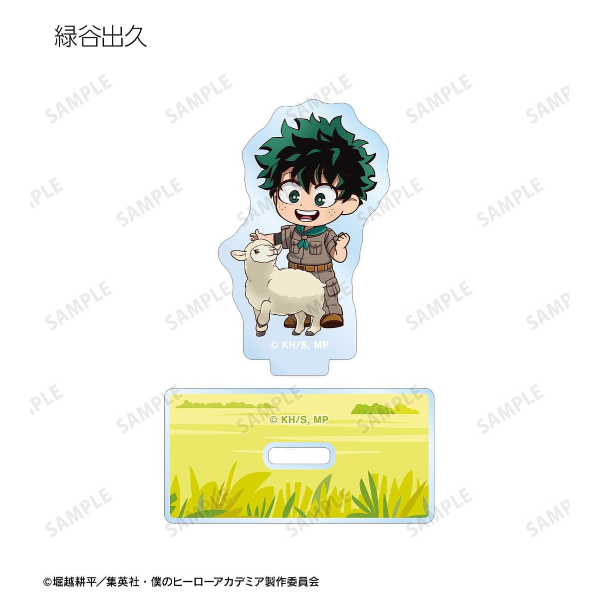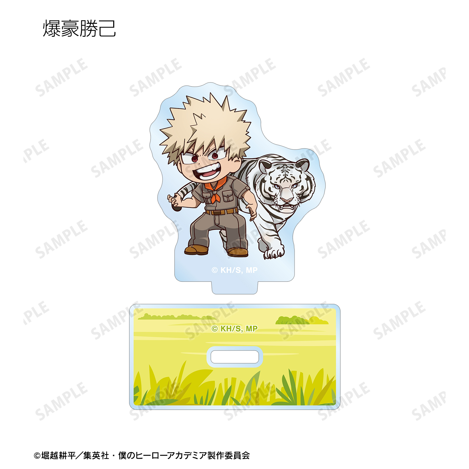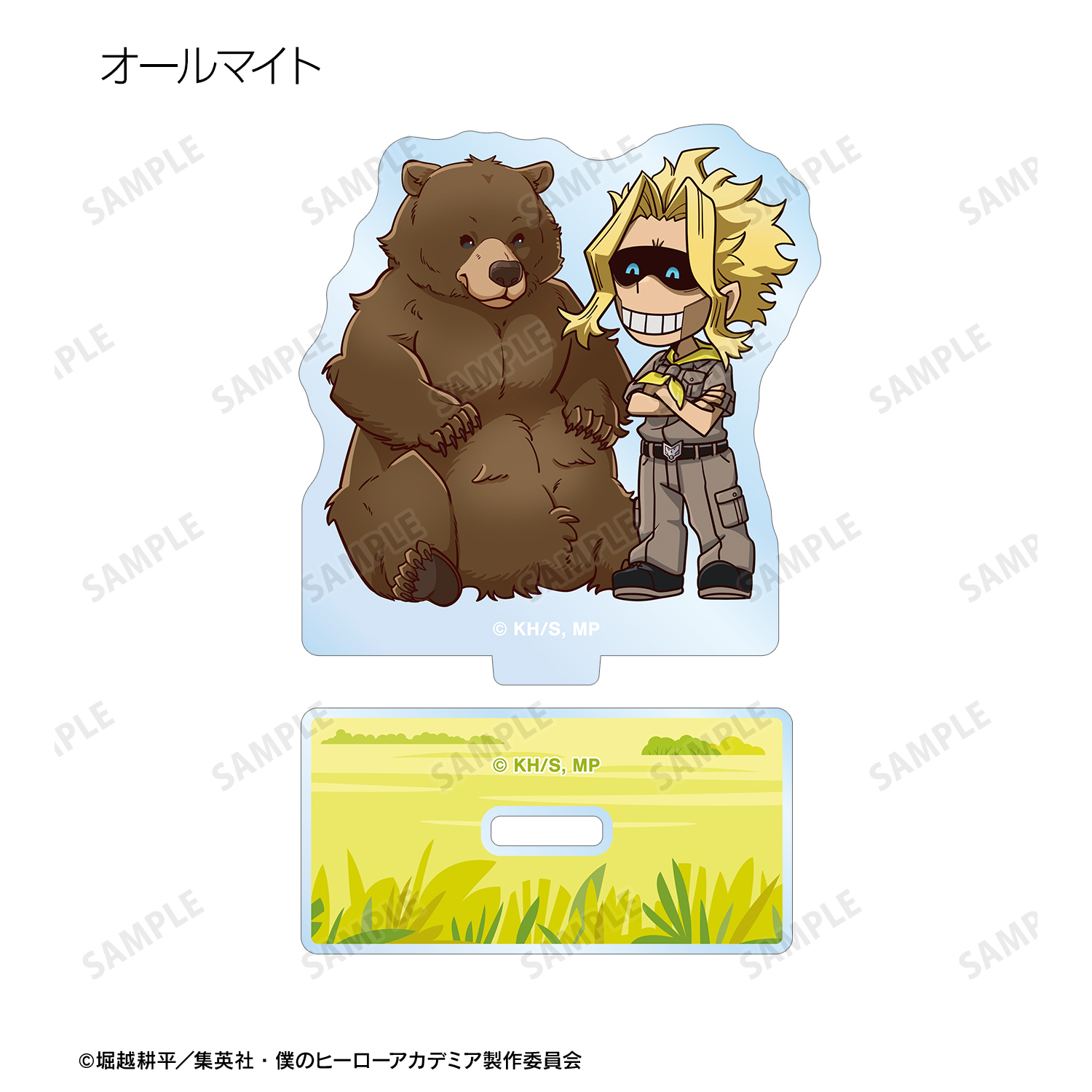 緑谷出久、爆豪勝己、麗日お茶子、轟焦凍、蛙吹梅雨、切島鋭児郎、上鳴電気、耳郎響香、心操人使、オールマイト、相澤消太、エンデヴァー、ホークス、死柄木弔、荼毘、トガヒミコの描き起こしちびキャラビジュアルをメインにデザインし、アクリルスタンドに仕上げました。