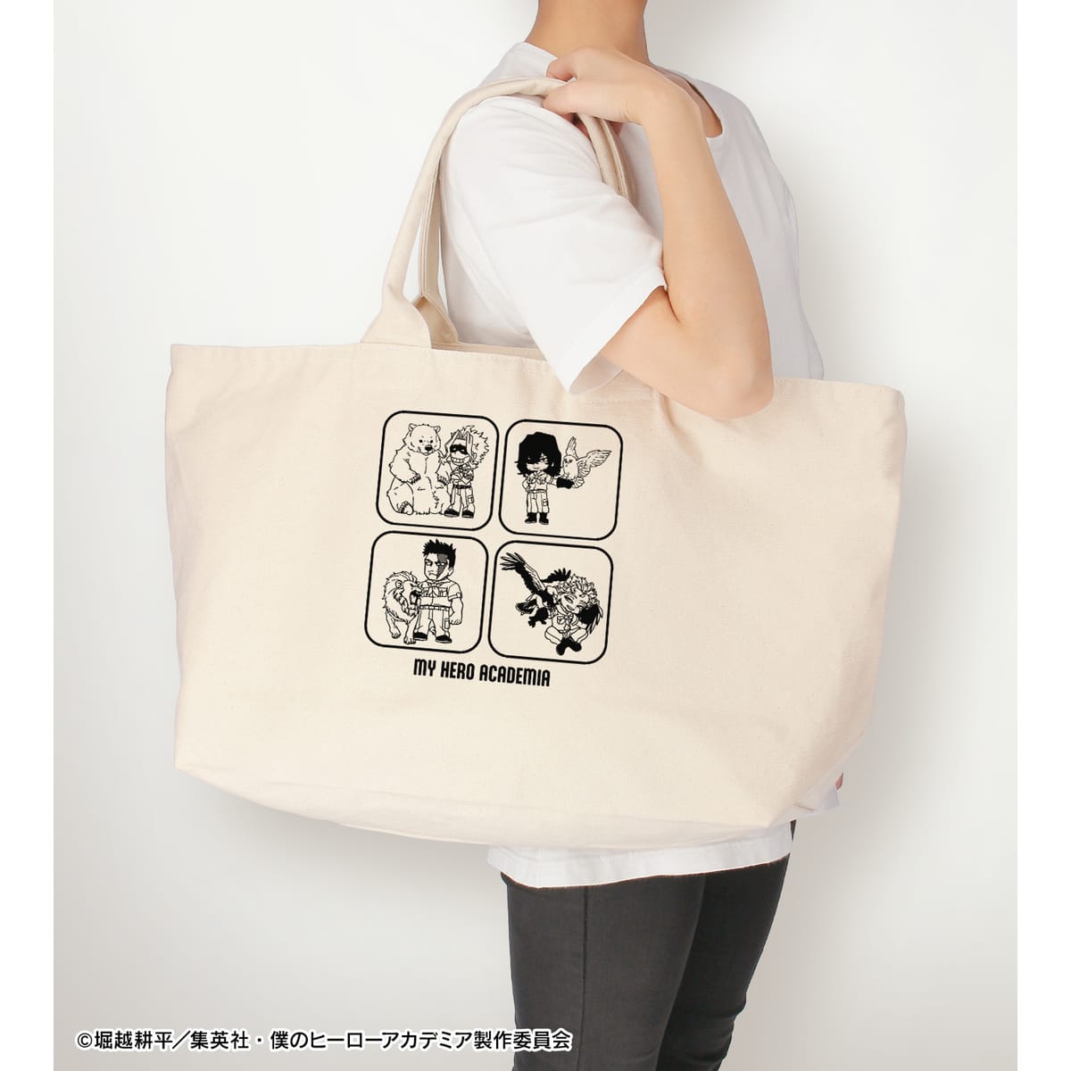 TVアニメ『僕のヒーローアカデミア』×「東武動物公園」のコラボレーションアイテム「集合 ちびキャラ 動物とのふれあいver. BIGジップトートバッグ ver.B」の登場です。