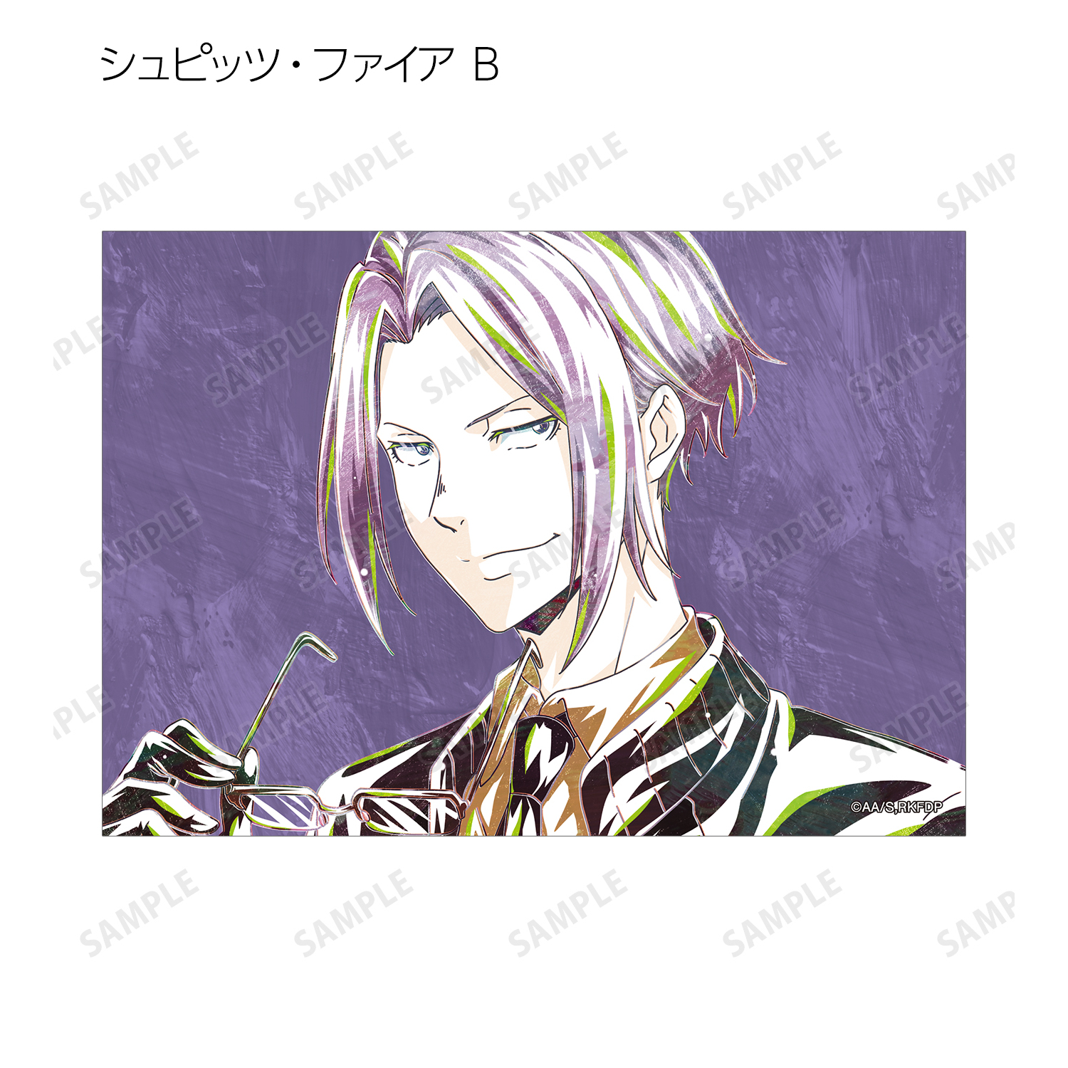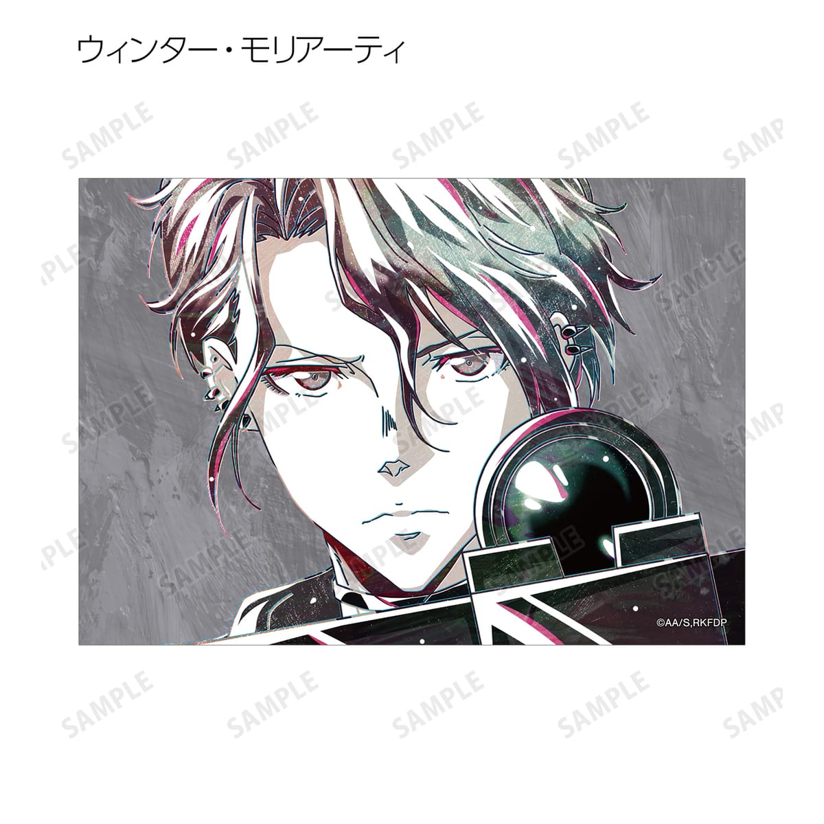 鴨乃橋ロン、一色都々丸、雨宮、シュピッツ・ファイア、翡翠臣疾、マイロ・モリアーティ、ウィンター・モリアーティのイラストを新たなタッチで魅力的に表現し、ブロマイドに仕上げました。