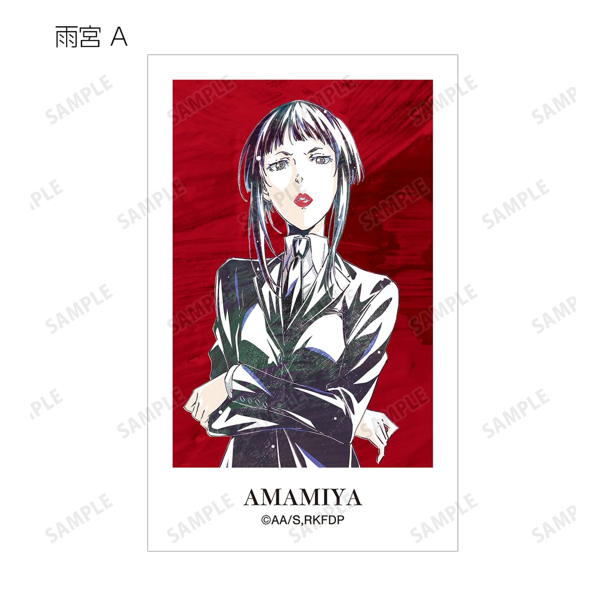 鴨乃橋ロン、一色都々丸、雨宮、シュピッツ・ファイア、翡翠臣疾、マイロ・モリアーティ、ウィンター・モリアーティのイラストを新たなタッチで魅力的に表現し、イラストカードに仕上げました。