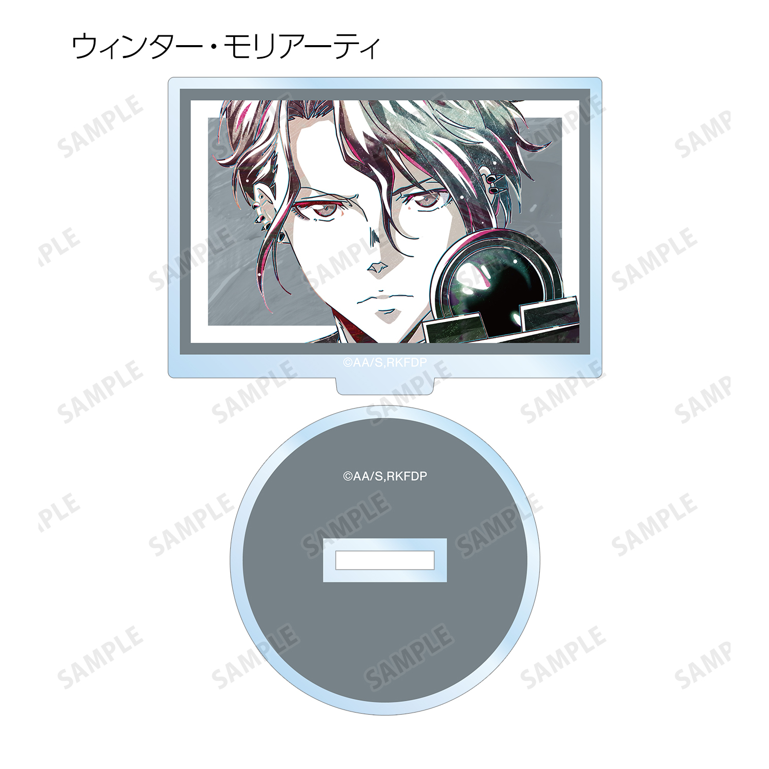 鴨乃橋ロン、一色都々丸、雨宮、シュピッツ・ファイア、翡翠臣疾、マイロ・モリアーティ、ウィンター・モリアーティのイラストを新たなタッチで魅力的に表現し、アクリルスタンドに仕上げました。