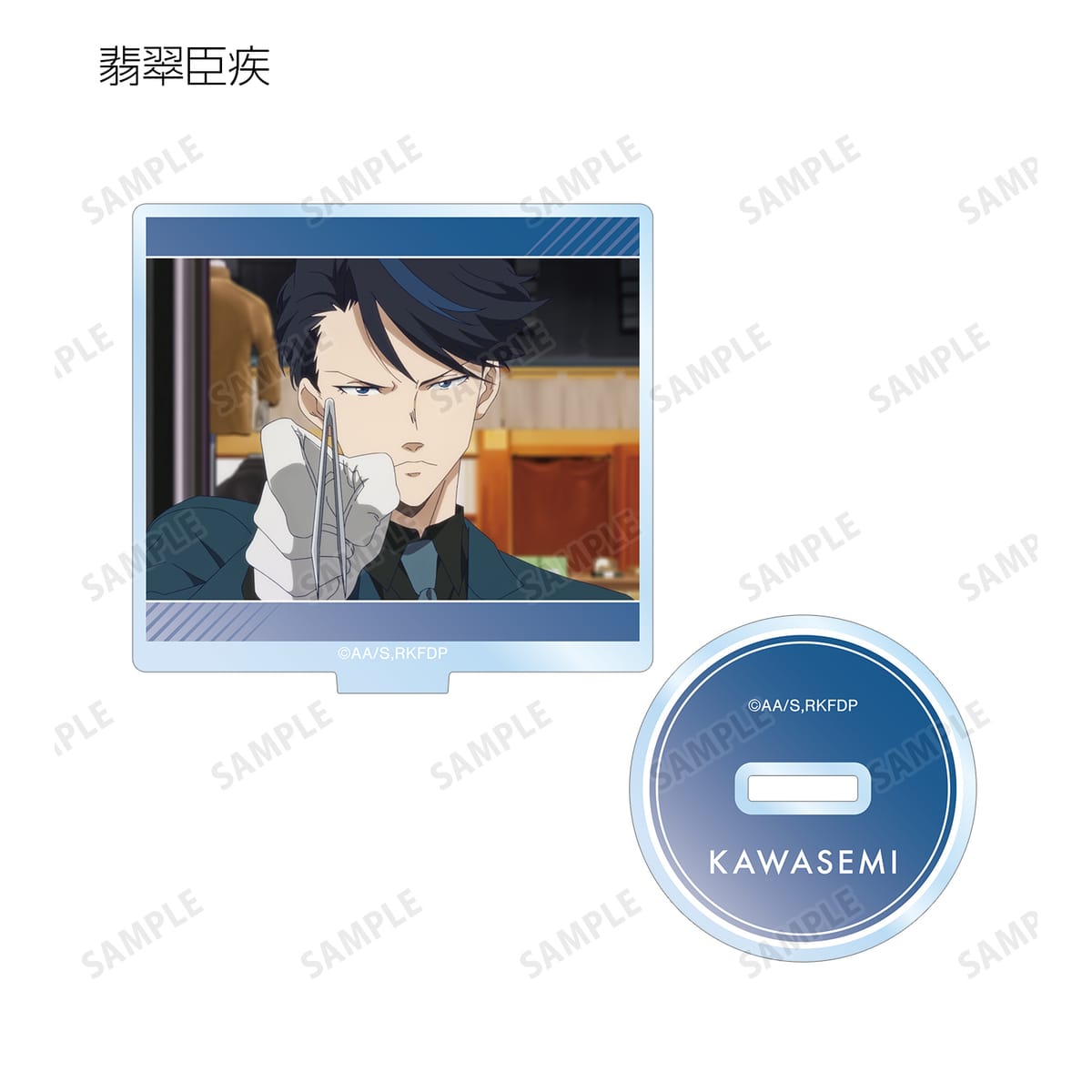 鴨乃橋ロン、一色都々丸、雨宮、シュピッツ・ファイア、翡翠臣疾、マイロ・モリアーティ、ウィンター・モリアーティの印象的なシーンをアクリルスタンドに仕上げました。