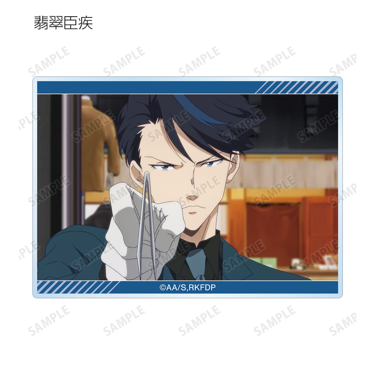 鴨乃橋ロン、一色都々丸、雨宮、シュピッツ・ファイア、翡翠臣疾、マイロ・モリアーティ、ウィンター・モリアーティの印象的なシーンをアクリルカードに仕上げました。