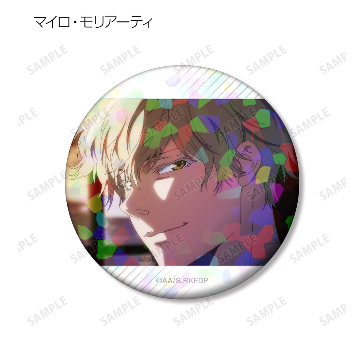 鴨乃橋ロン、一色都々丸、雨宮、シュピッツ・ファイア、翡翠臣疾、マイロ・モリアーティ、ウィンター・モリアーティの印象的なシーンをホログラム加工を施した缶バッジに仕上げました。