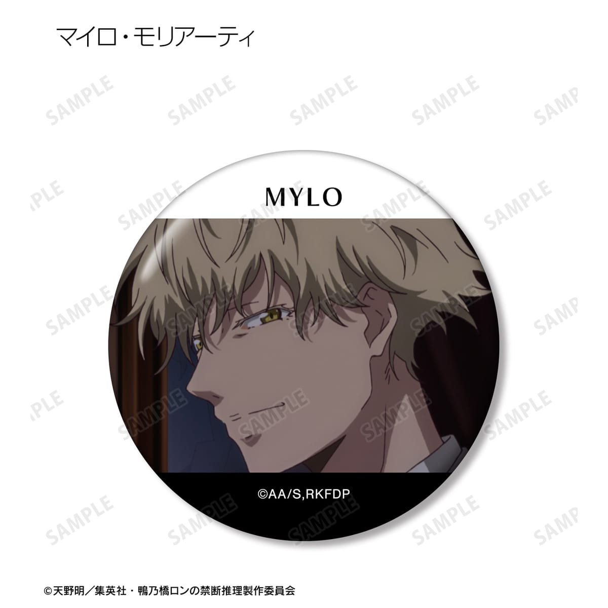 鴨乃橋ロン、一色都々丸、雨宮、シュピッツ・ファイア、翡翠臣疾、マイロ・モリアーティ、ウィンター・モリアーティの印象的なシーンを缶バッジに仕上げました。