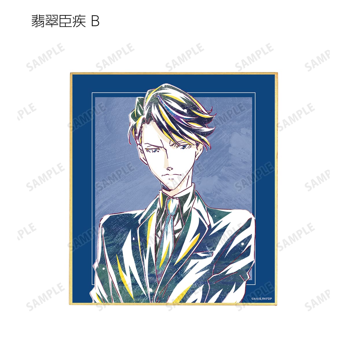 鴨乃橋ロン、一色都々丸、雨宮、シュピッツ・ファイア、翡翠臣疾のイラストを新たなタッチで魅力的に表現し、ミニ色紙に仕上げました。