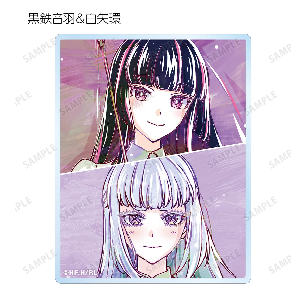 鈴ノ宮りりさ、黒鉄音羽、院瀬見ティナ、白矢環のイラストを新たなタッチで魅力的に表現し、アクリルカードに仕上げました。