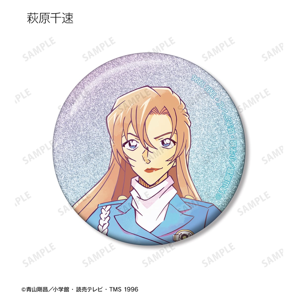 江戸川コナン、灰原哀、毛利蘭、世良真純、萩原千速、横溝重悟、松田陣平、萩原研二のイラストを新たなタッチで魅力的に表現し、グリッター加工を施した缶バッジに仕上げました。