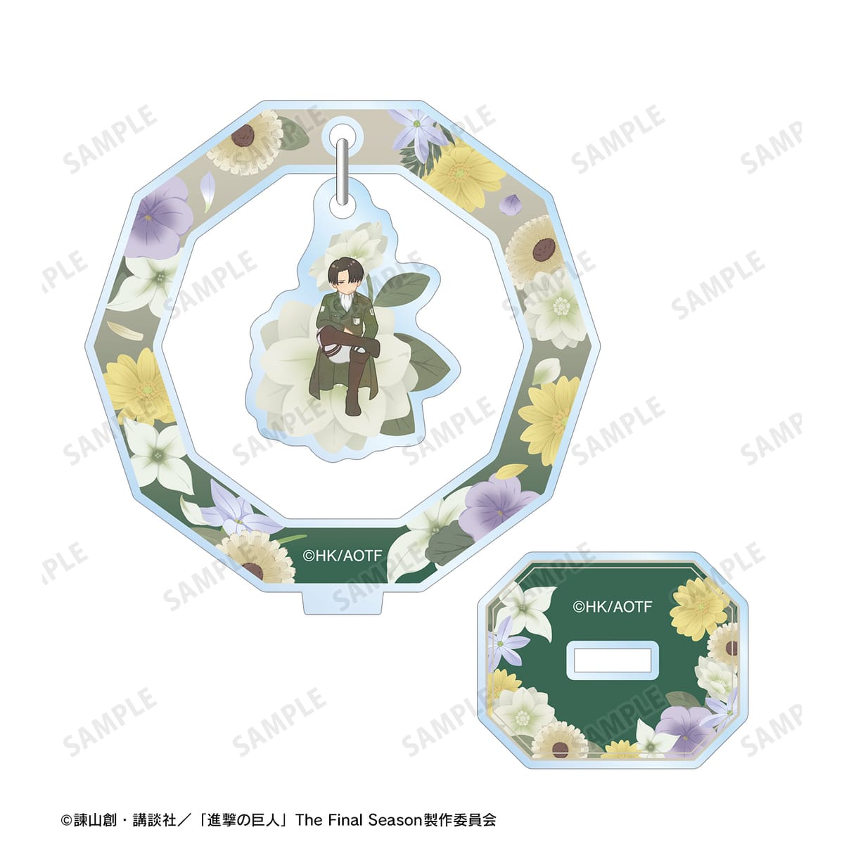 リヴァイのイラストをボタニカルデザインに落とし込んで繊細なタッチで新たに描き起こし、ゆらゆら動くアクリルスタンドに仕上げました。