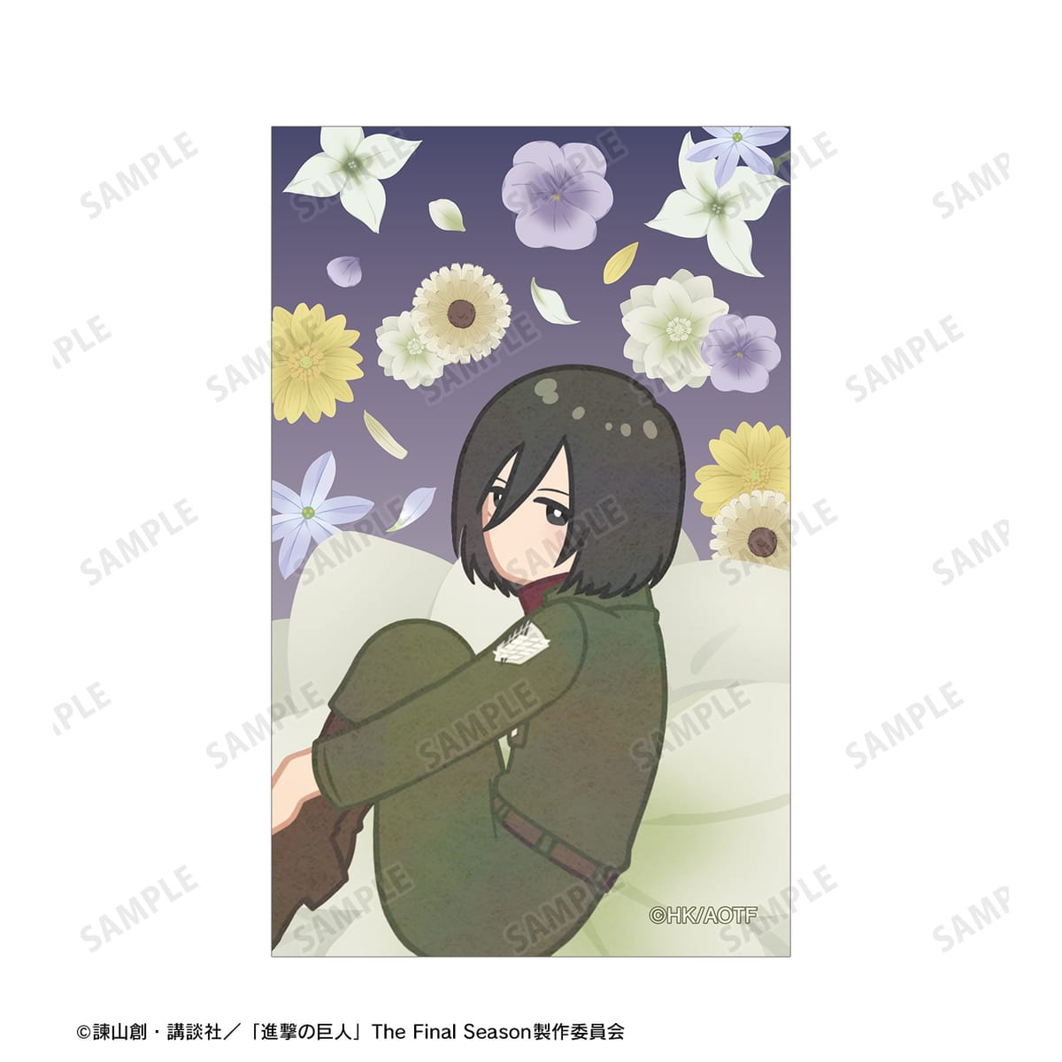 ミカサのイラストをボタニカルデザインに落とし込んで繊細なタッチで新たに描き起こし、イラストカード2枚セットに仕上げました。
