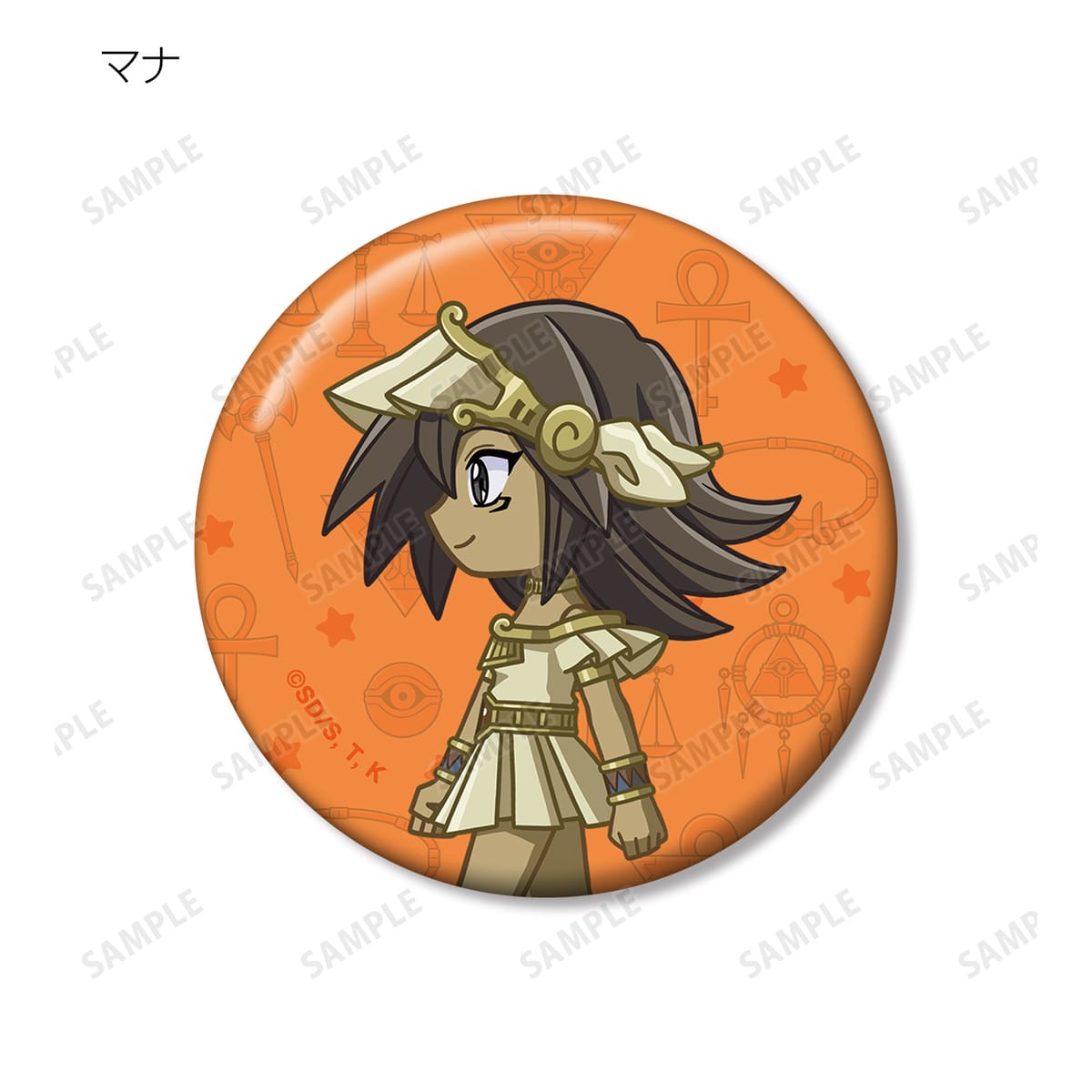 闇遊戯、武藤遊戯、海馬瀬人、城之内克也、闇マリク、闇バクラ、盗賊王バクラ、アテム、セト、ブラック・マジシャン、ブラック・マジシャン・ガール、キサラ、マハード、マナが歩いているちびキャラを新たに描き起こし、缶バッジに仕上げました。