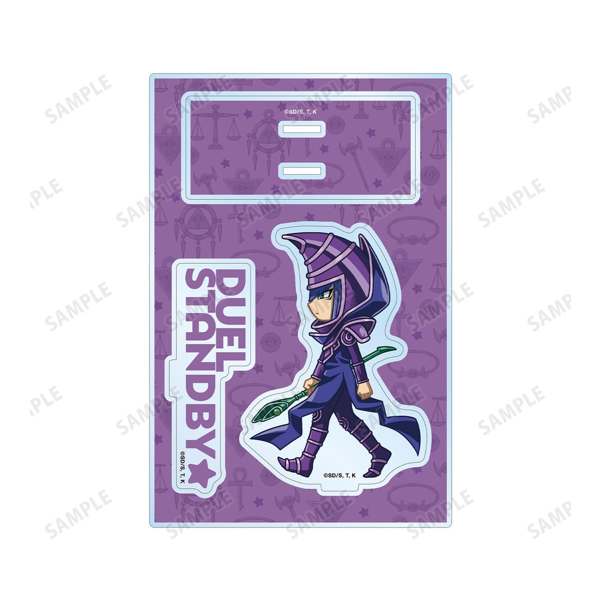 ブラック・マジシャンが歩いているちびキャラを新たに描き起こし、パーツ付きのBIGなアクリルスタンドに仕上げました。