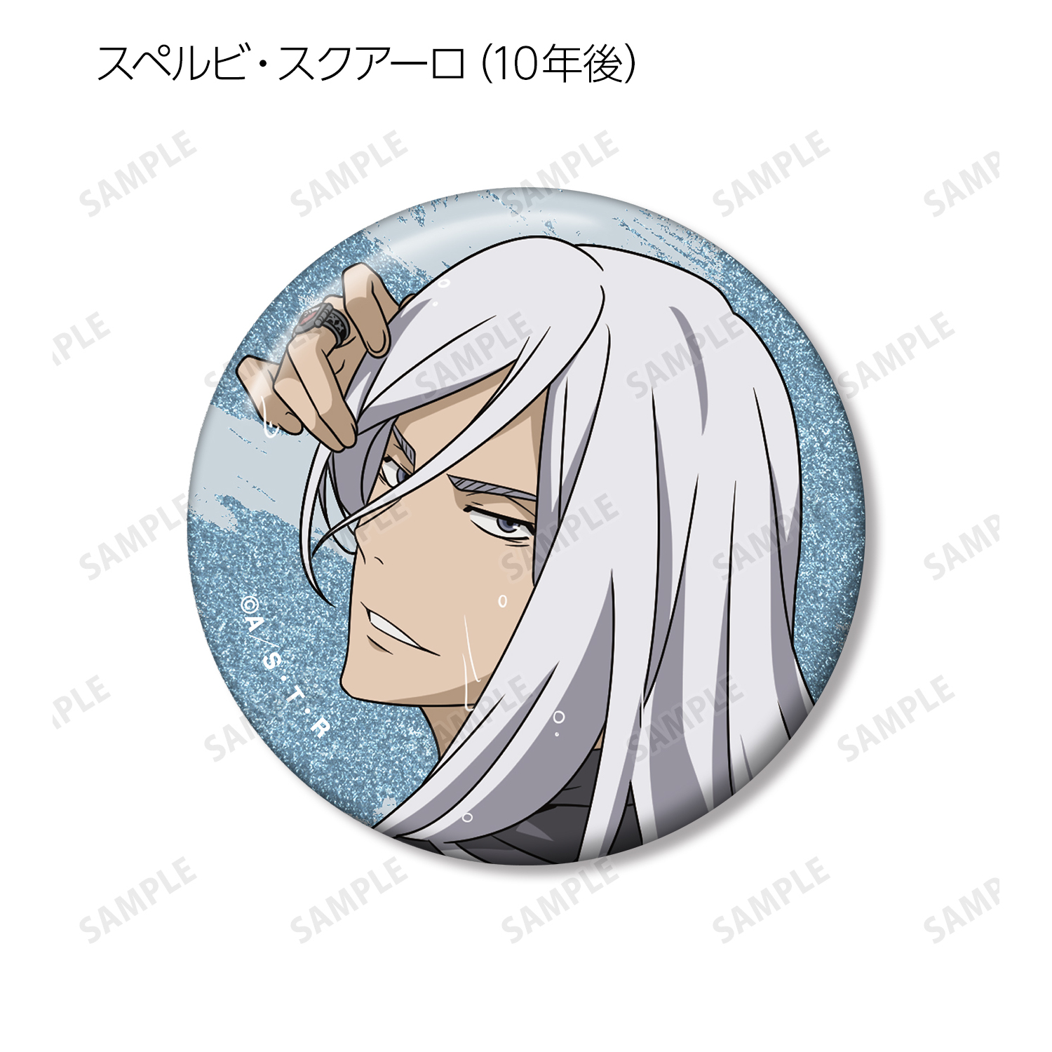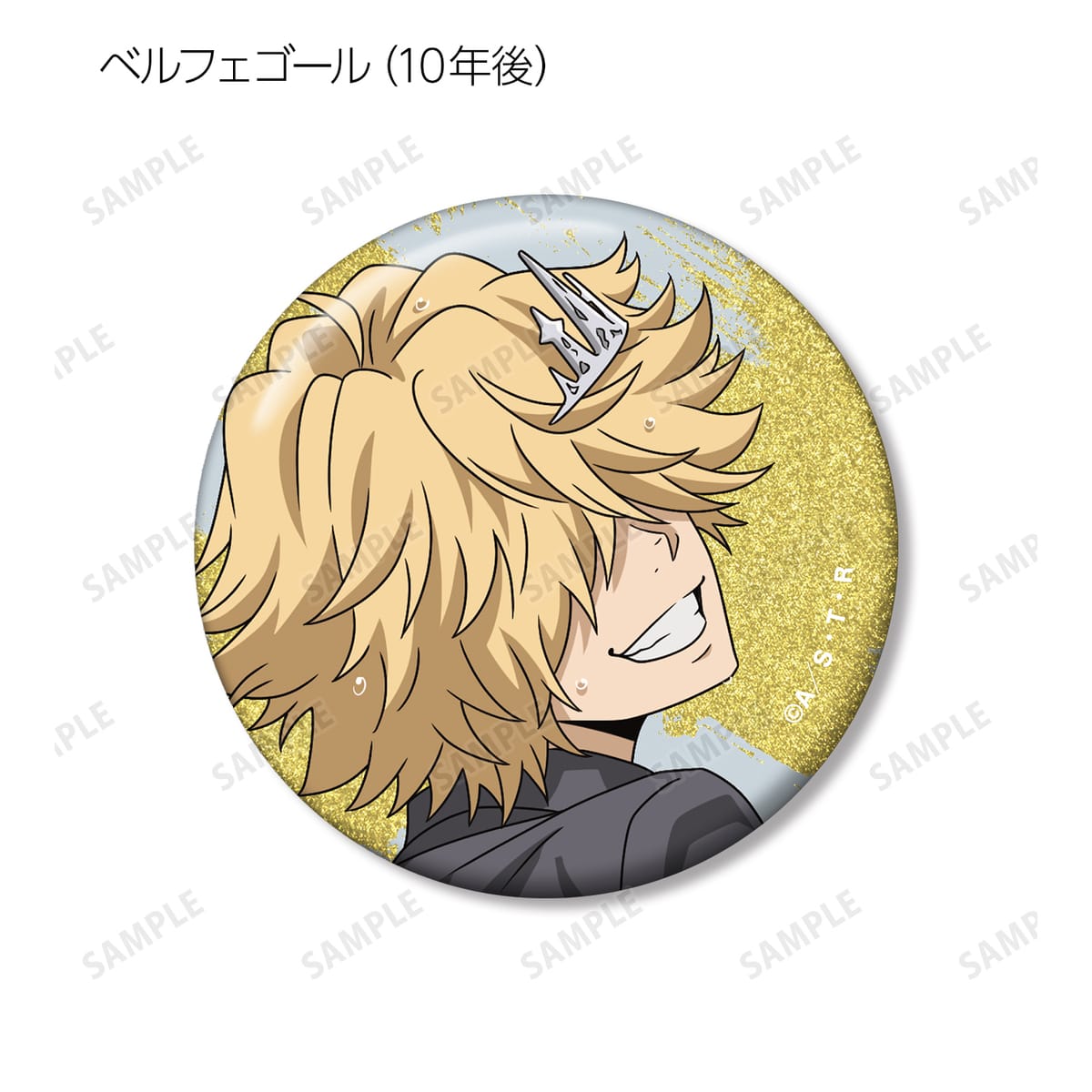 沢田 綱吉、リボーン、獄寺 隼人、山本 武、雲雀 恭弥、六道 骸(10年後)、XANXUS(10年後)、スペルビ・スクアーロ(10年後)、ベルフェゴール(10年後)、フランの描き下ろしイラストをグリッター加工を施した缶バッジに仕上げました。