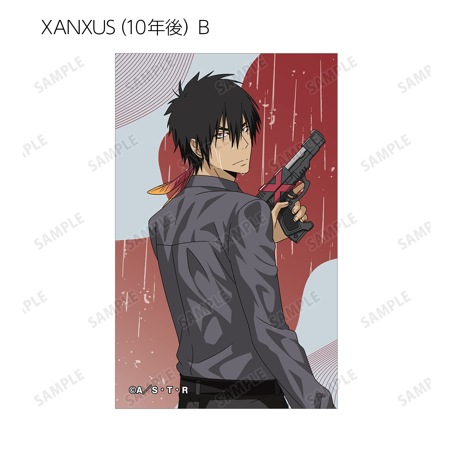 沢田 綱吉、リボーン、獄寺 隼人、山本 武、雲雀 恭弥、六道 骸(10年後)、XANXUS(10年後)、スペルビ・スクアーロ(10年後)、ベルフェゴール(10年後)、フランの描き下ろしイラストをイラストカードに仕上げました。