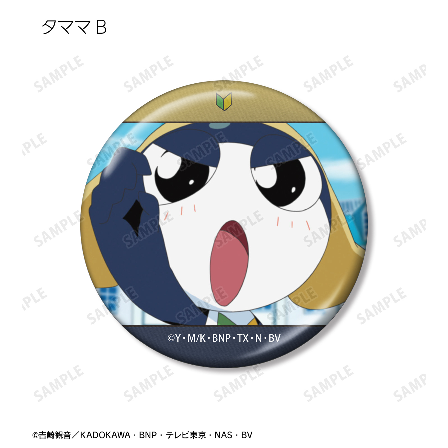 タママの印象的なシーンをメタリック仕様の缶バッジに仕上げました。