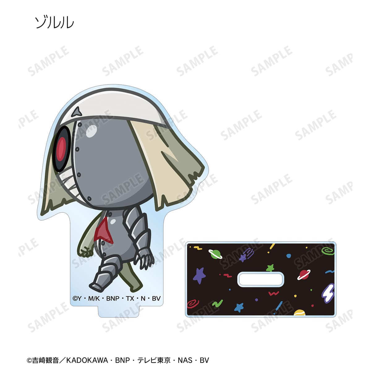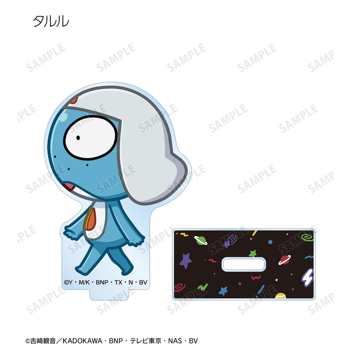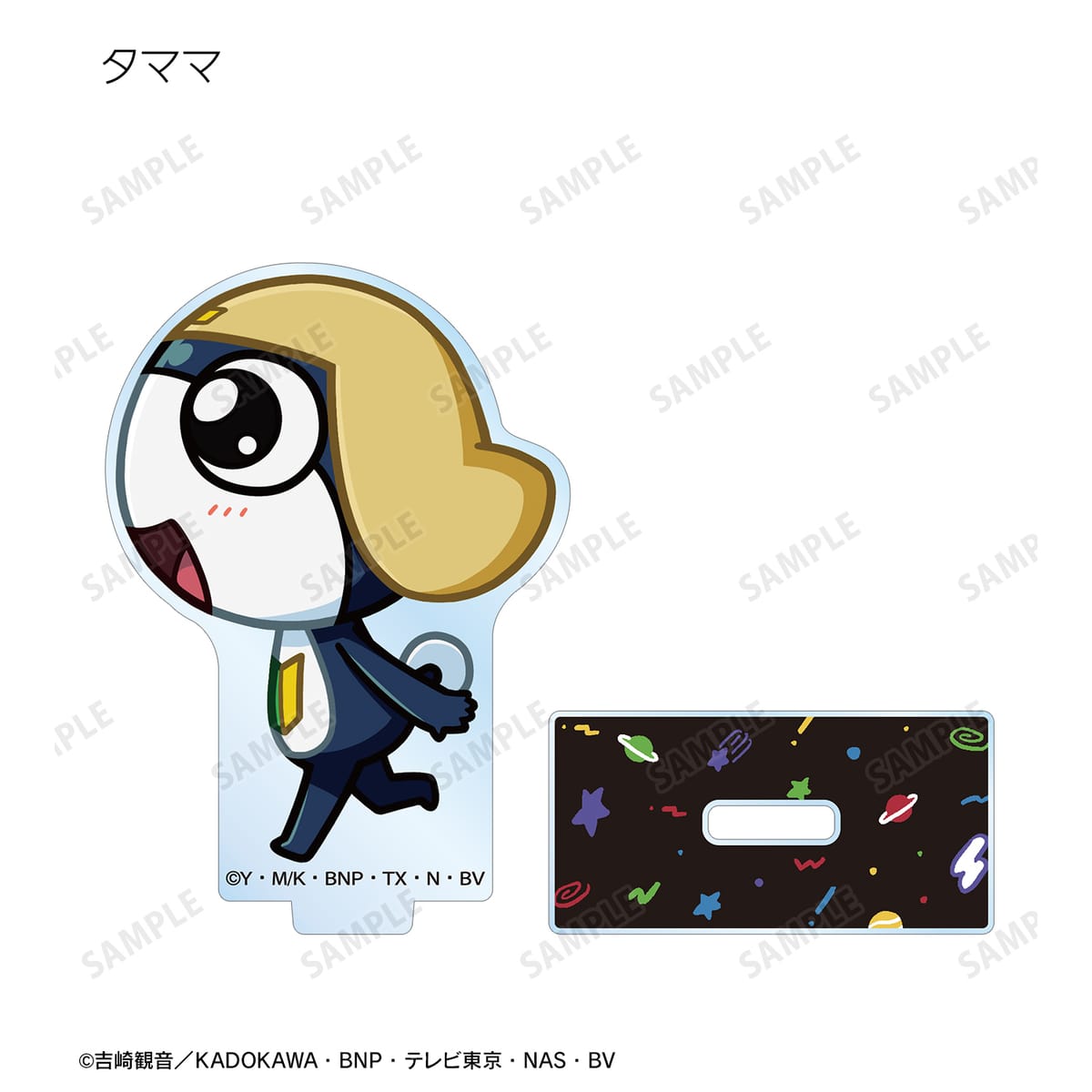 ケロロ、タママ、ギロロ、クルル、ドロロ、ガルル、タルル、トロロ、ゾルル、プルル、日向 冬樹、日向 夏美、西澤 桃華、サブロー、東谷 小雪、アンゴル・モアが歩いているちびキャラを新たに描き起こし、アクリルスタンドに仕上げました。